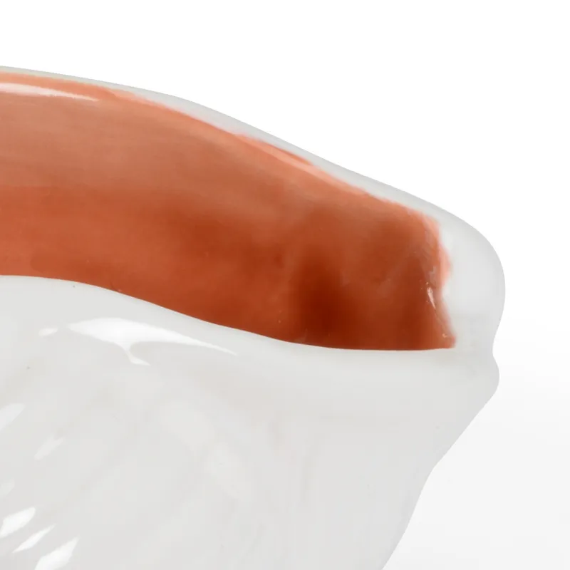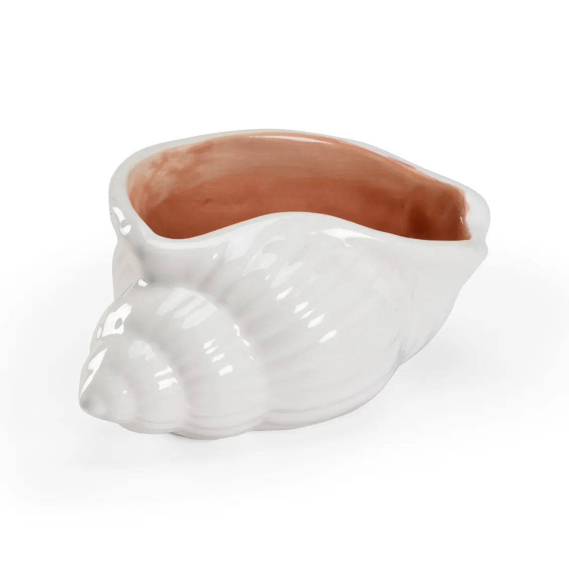 Large decorative white italian ceramic shell bowl with a coral glazed inside.