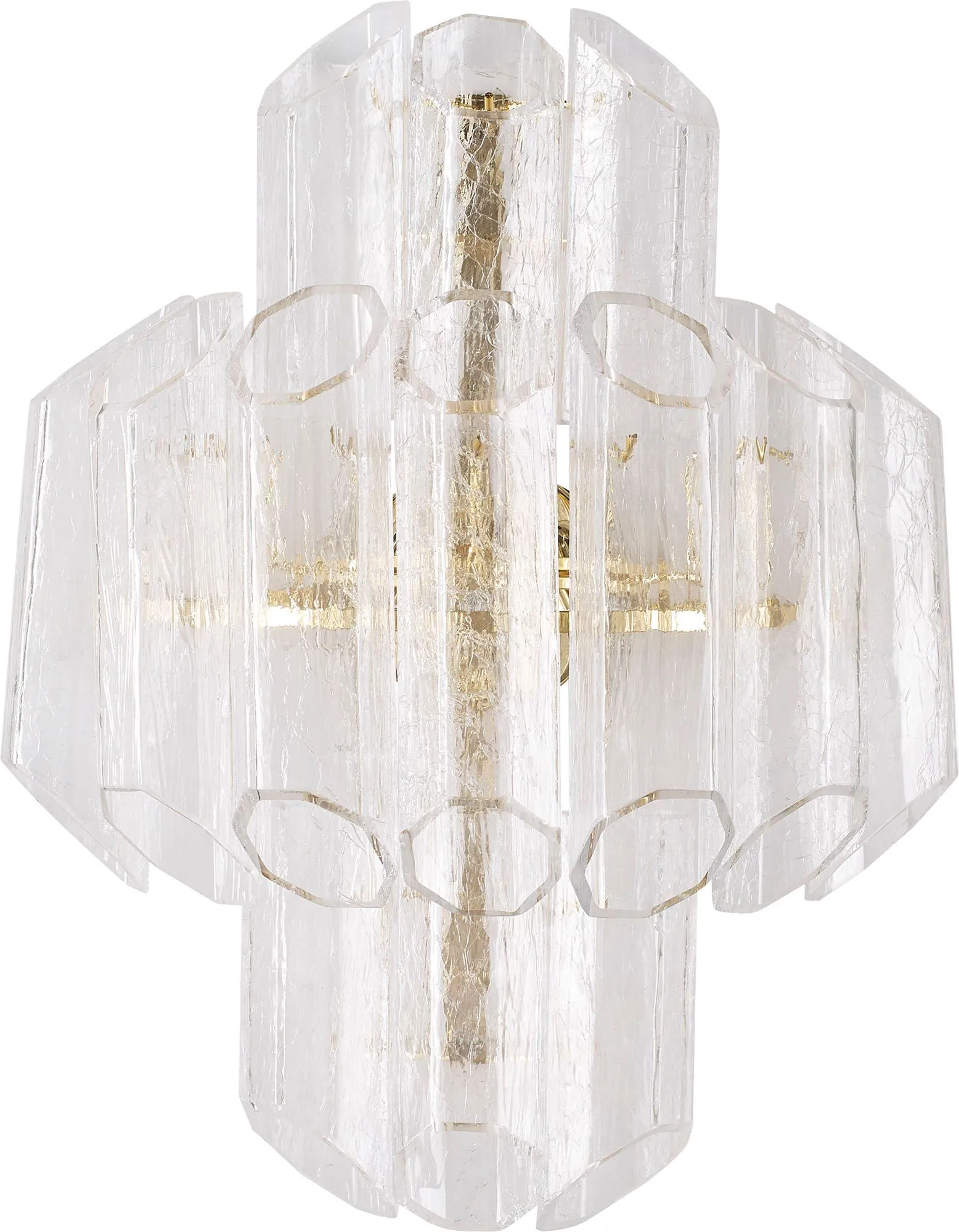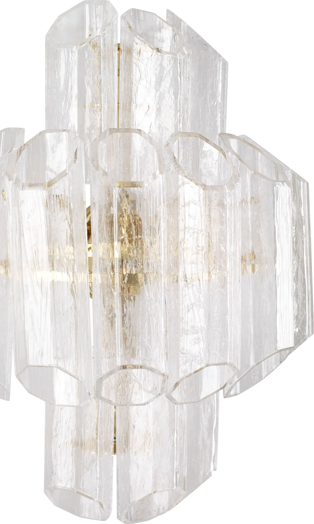 The Stella Sconce commands attention with a unique glass finish, ghiaccio, that simulates the look of crackling ice. Each of its octagonal tubes are crafted in crystal-colored Murano blown glass.