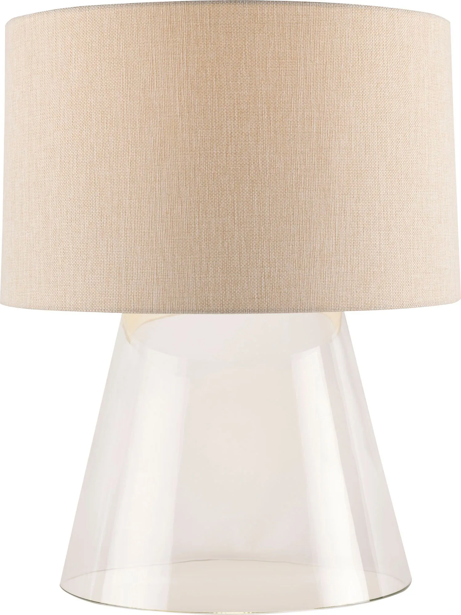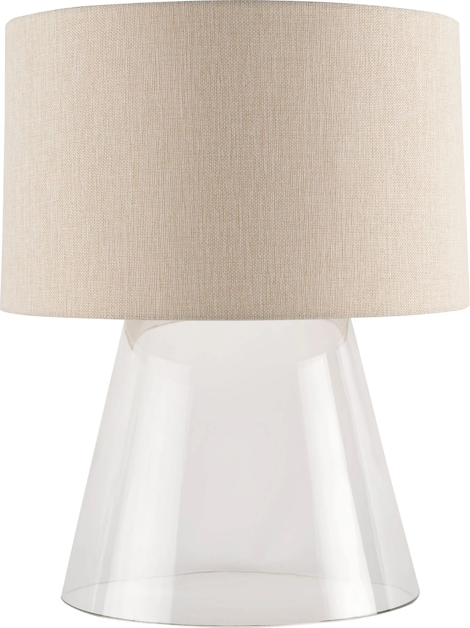 The Clarity Taper Lamp - Large embodies the simplicity of form that defines modern design, featuring a generously scaled, sloping base created entirely in Murano glass. The lamp is topped with a textured linen shade, handmade in Italy.