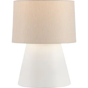 The Dias Cylinder Lamp is finished with a custom plaster that softens its glow and creates a calming effect in your space. Crafted by hand in Italy, the lamp features a textured linen shade atop its simple and modern base.
