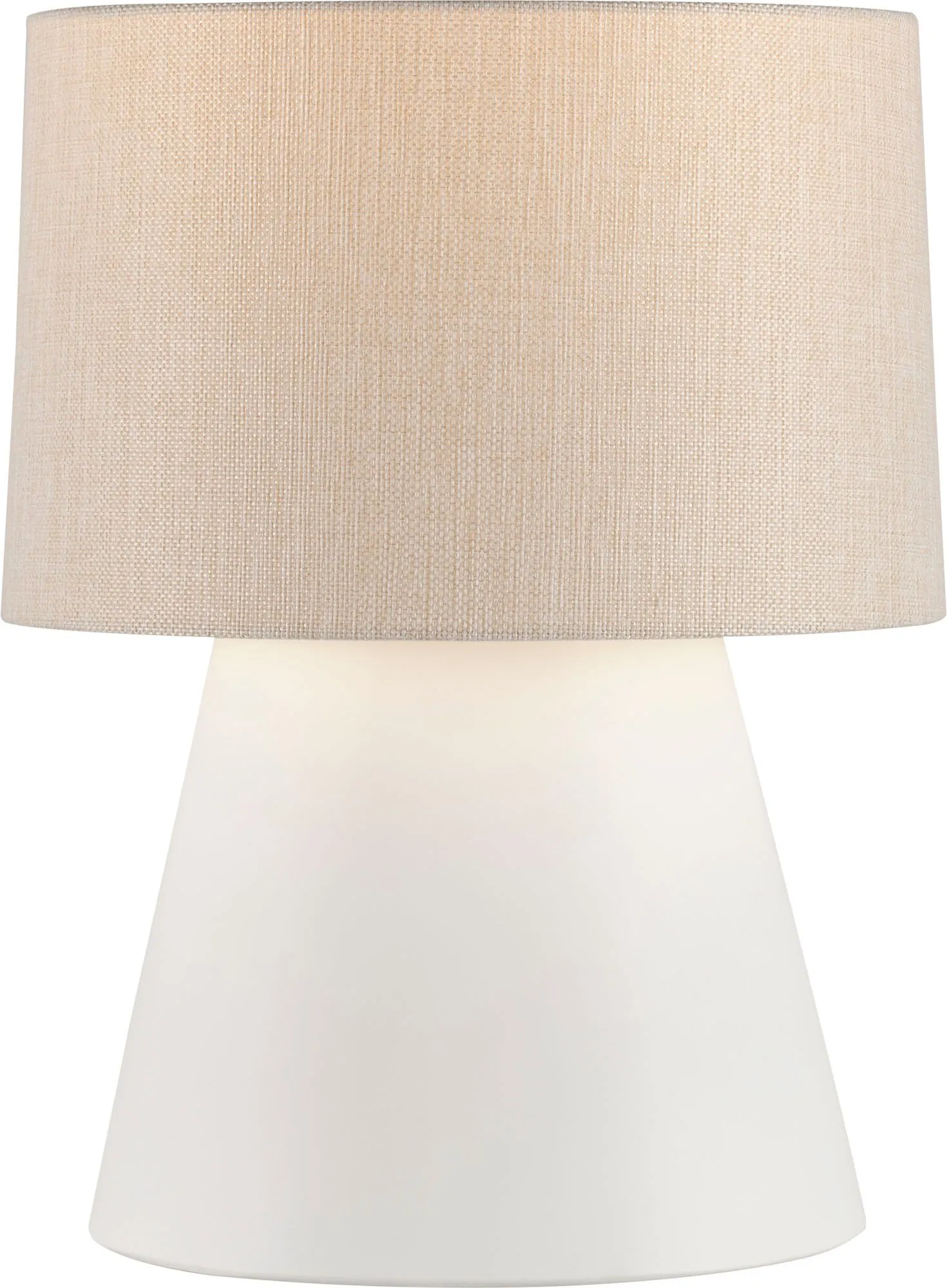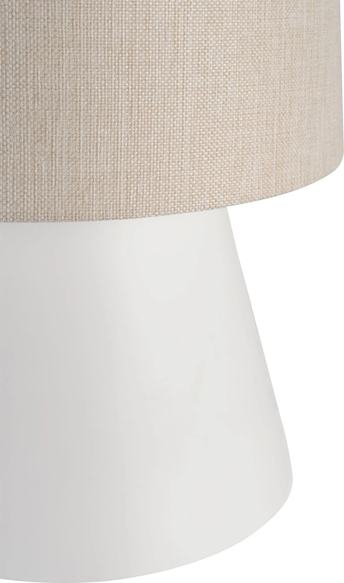 Handmade in Italy, the Dias Taper Lamp - Small is crafted with a linen shade and plaster. This carefully selected finish softens the glow of the lamp, offering an elegant addition to every living space.