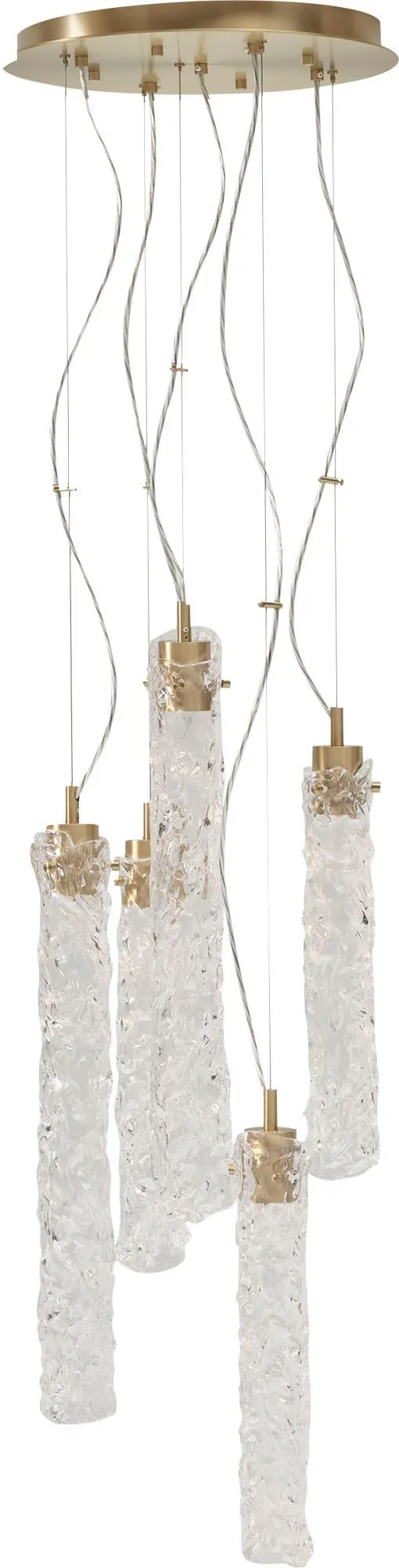 The joyful and expressive Volare Pendant - Large has a light and friendly vibe like the famed Italian song that inspired its name. Cast and solid brass elements and five cast Murano glass pendants are freely joined to create an unexpected work of art.