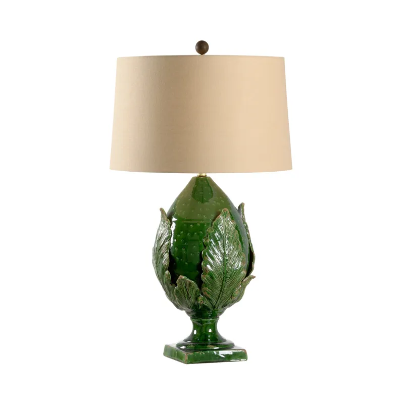 Aged emerald green glazed porcelain with antique brass parts. Made in Italy.
