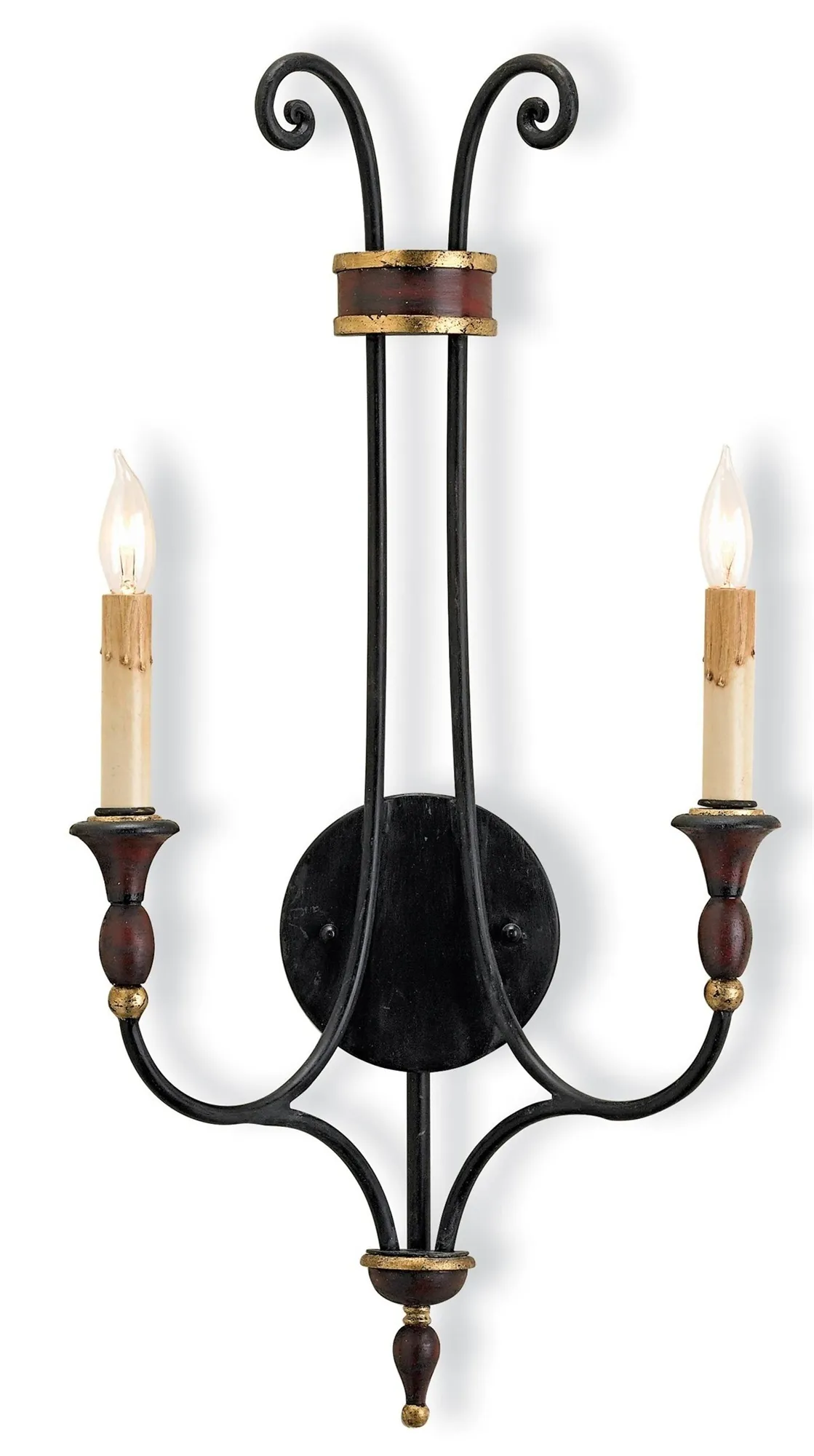 Featuring hand-painted, carved wood accents and a slender, wrought iron frame, the Kildare Wall Sconce is simple yet sophisticated. Touches of Pagoda Red and Gold Leaf finishing add a hint of luxury to this divine wall sconce.