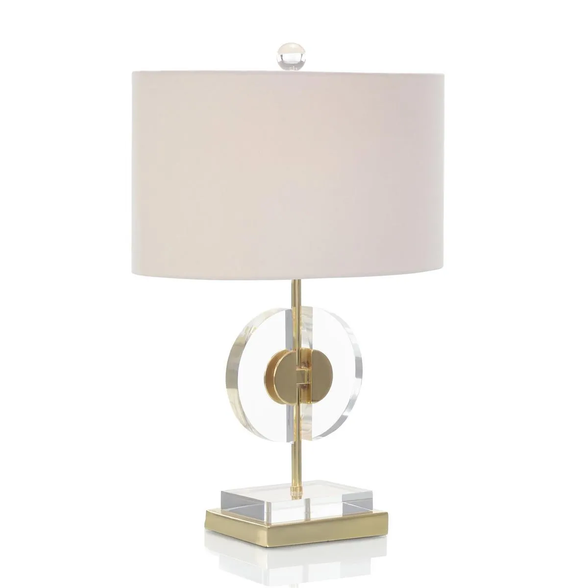 The Half-Moon Table Lamp features acrylic and polished brass.