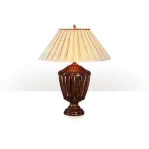 A pollard burl and finely cast brass table lamp, the twin light arms above a shaped base with brass mounts surmounted by hand sewn silk shade. The original Louis XVI.