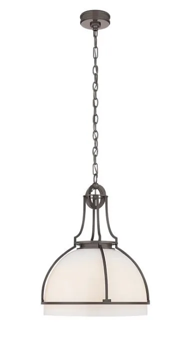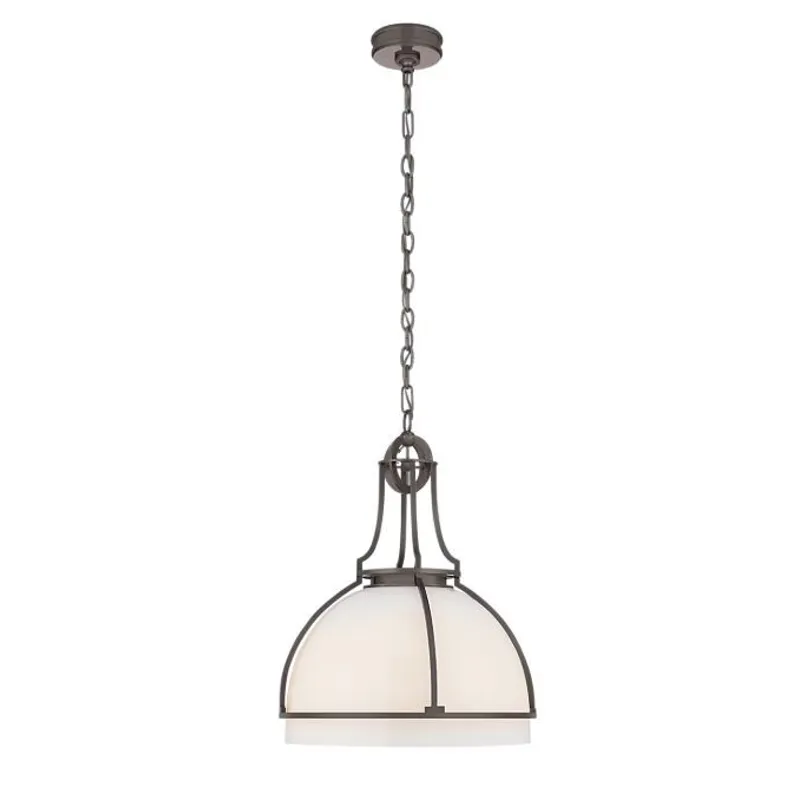 Height: 24.75" Width: 19" Canopy: 5" Round Lightsource: Dedicated LED Wattage: 18w (1500lm) Â Â Â Â Â Â Â Chain Length: 6' Weight: 21 lbs.Gracie Large Dome Pendant - Bronze / White Glass