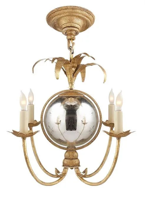 Delicate and distinctive, the Chapman & Myers Gramercy highlights a unique mix of materials to lend an iconic elegance to formal spaces. Featuring hand-sculpted wheat leaf detailing and a gleaming, hand-applied, antiqued mirror sphere, each gilded Gramercy design boasts slender curved arms that hold candle-inspired lights. The refined silhouettes span chandeliers, lanterns and sconces that redefine modern luxury.