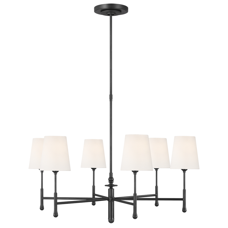 Robust and versatile series that uses classical profiles to make its distinctive finial and other fine details, from Linen shades to unique finishes  Width: 34" Overall Height: 85.125" Height: 29.75" Canopy: D Socket: 6 - Medium - A19