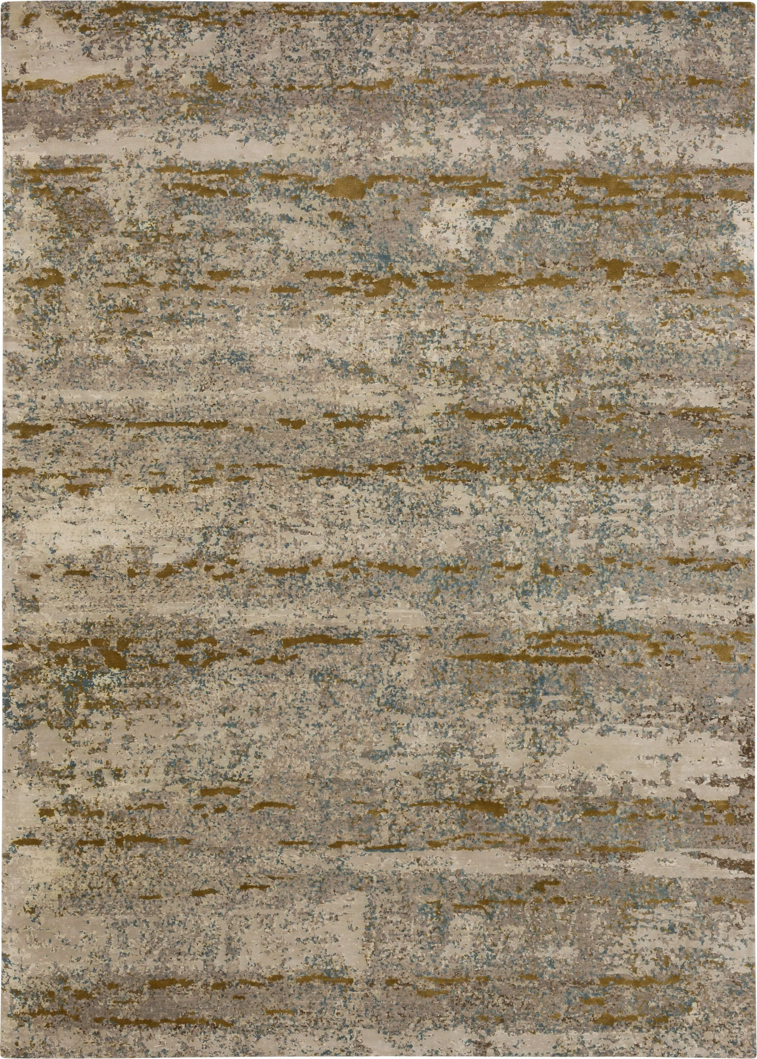 Contemporary color erosion techniques and modern distressed details make a splash in a neutral palette of grey, white, silver and gold in Karastan’s Provocateur Area Rug from the Bespoke Collection. Artisan hand-knotted with a blend of luxurious wool and silk yarn, this design is also available in runners, scatters, 5’ x 8’ area rugs, large 8’ x 10’ area rugs and other popular sizes. Ideal for entryways, living rooms, kitchens, bedrooms, dining areas, offices and more, this area rug is densely tufted with premium synthetic yarn, so it is also incredibly stain-resistant. While wool is renowned for its strength and durability, silk is coveted for its luminescent sheen and softness, bringing the best of both worlds home. Keep your new rug and the flooring beneath looking their best with an essential all-surface, earth conscious rug pad, crafted of 100% recycled fibers and certified Green Label Plus by The Carpet & Rug Institute!