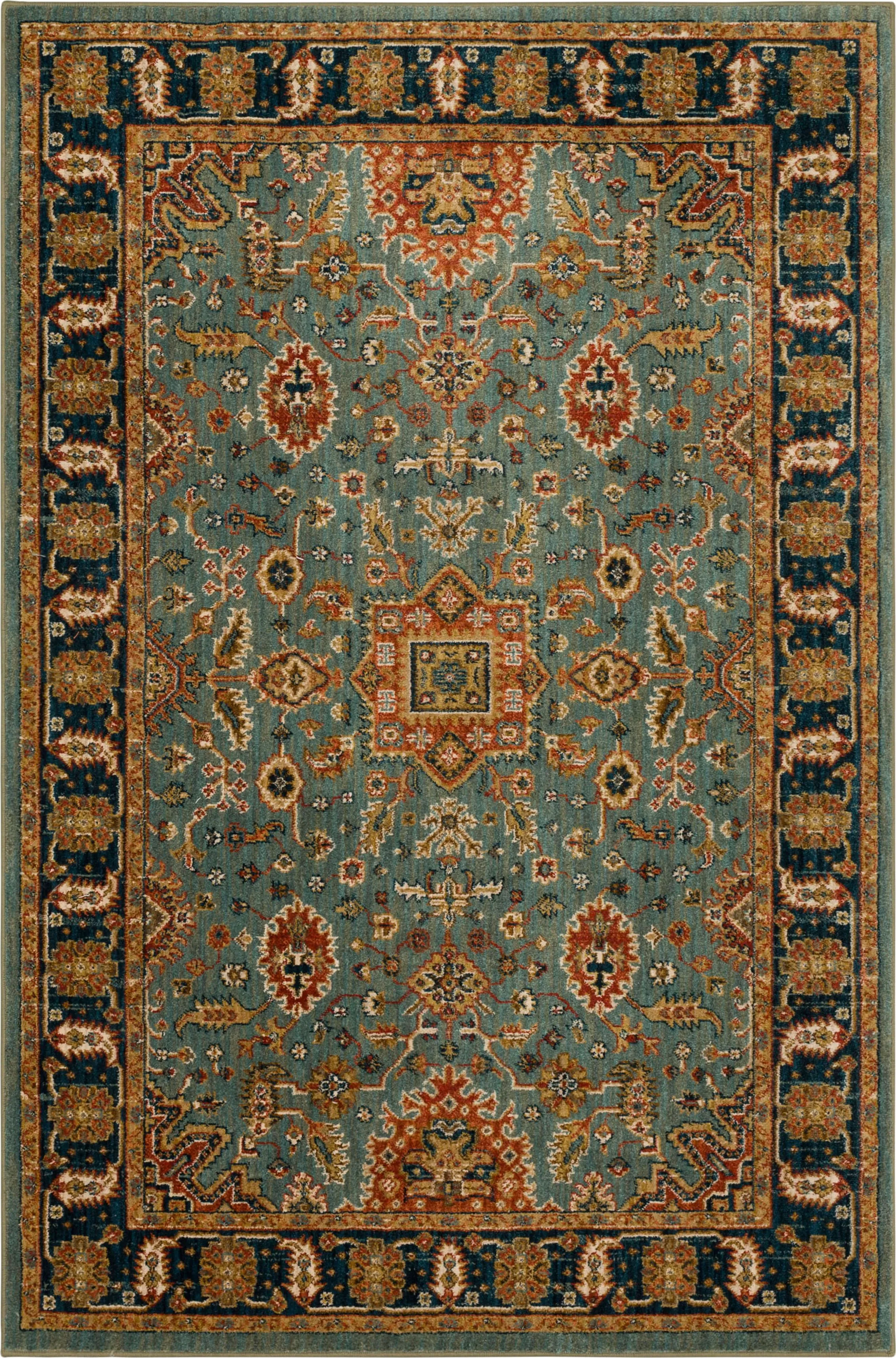 Vibrant hues of aquamarine, sapphire, spice, garnet and citron paint the picture of the Deir, an exotic debut of our Spice Market Collection. One part unexpected, one part eternal, the Deir area rug will add an aura of timeless originality to any space. Finished in our exclusive EverStrandâ„¢ fiber, the Deir is consciously created from up to 100% post-consumer content from plastic bottles. A premium polyester, EverStrandâ„¢ offers a thick, sumptuous softness, inherent stain resistance and vivid color clarity.