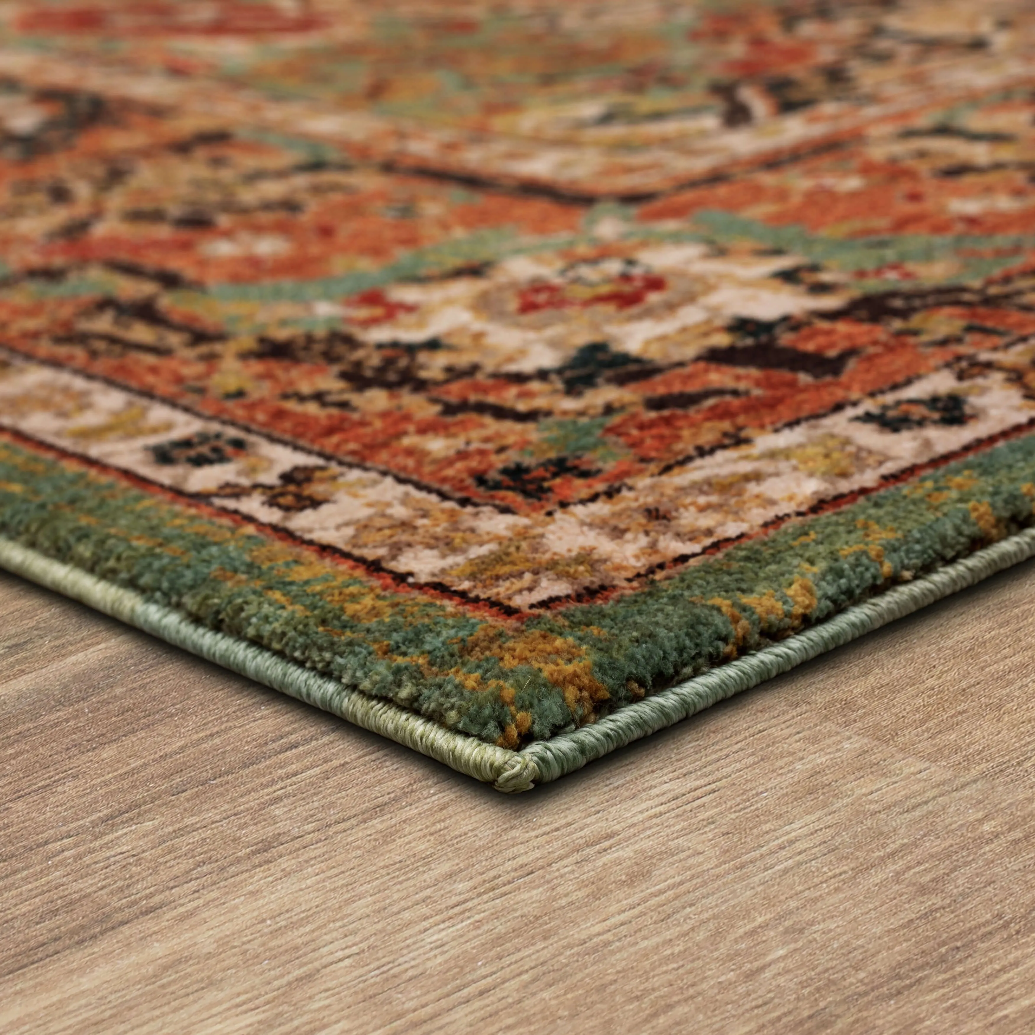 Gazing at the multidimensional design of Karastan Rugs' Dhahar are rug, one would be hard pressed to count each of the dynamic details that comprise this lavishly adorned masterpiece. Subtle striations throughout the dark garnet hued base add rich depth. Stealing the show are two central gold, cream and sapphire hued herati designs, the focal points of the luxurious Dhahar. Machine woven from premium polyester fibers, the Karastan Spice Market collection offers rugs with thick, sumptuous softness, inherent stain resistance, and striking color clarity.