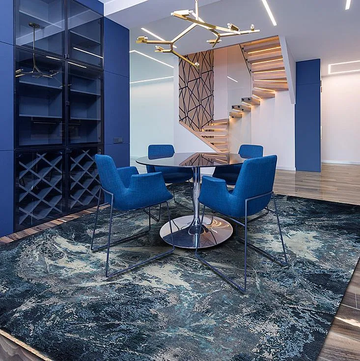The Affinity Rug Collection is masterly hand-knotted using hand-carded wool and pure hand-spun silk. These modern abstract rug designs express feelings of movement and energy which are available in a variety of blue and grey shades.
