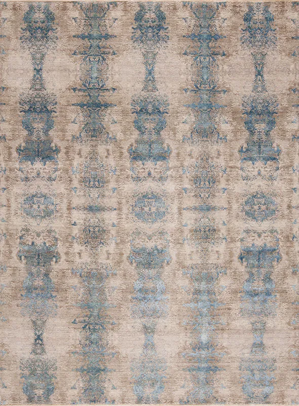 The Pantheon Wool & Silk Rug Collection comprises finely woven carpets made with hand-carded wool and hand-spun, hand-carved silk. With shades of blue, grey and ivory, these dynamic kaleidoscopic designs calm the mind and trigger the imagination.