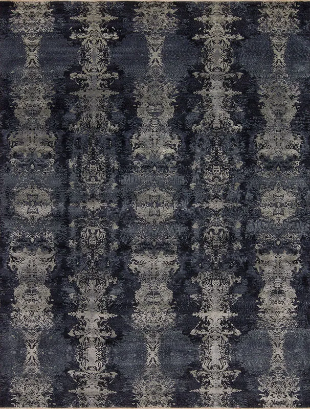 The Pantheon Wool & Silk Rug Collection comprises finely woven carpets made with hand-carded wool and hand-spun, hand-carved silk. With shades of blue, grey and ivory, these dynamic kaleidoscopic designs calm the mind and trigger the imagination.