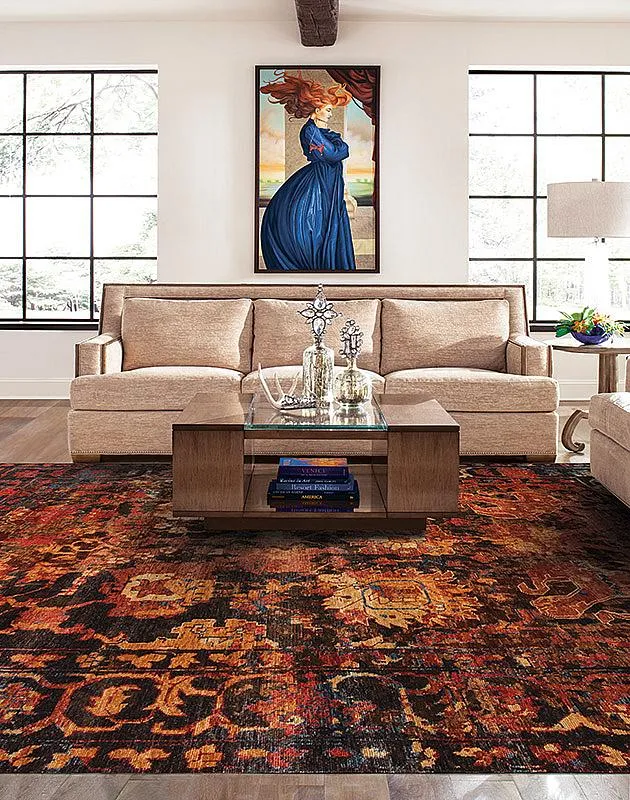 The bold Shangri La Collection showcases elegant floral designs in vibrant, dynamic colors. Hand-knotted in India from 100% New Zealand wool, these rugs offer a beautiful texture and luxurious feel, perfect for adding sophistication to any space.