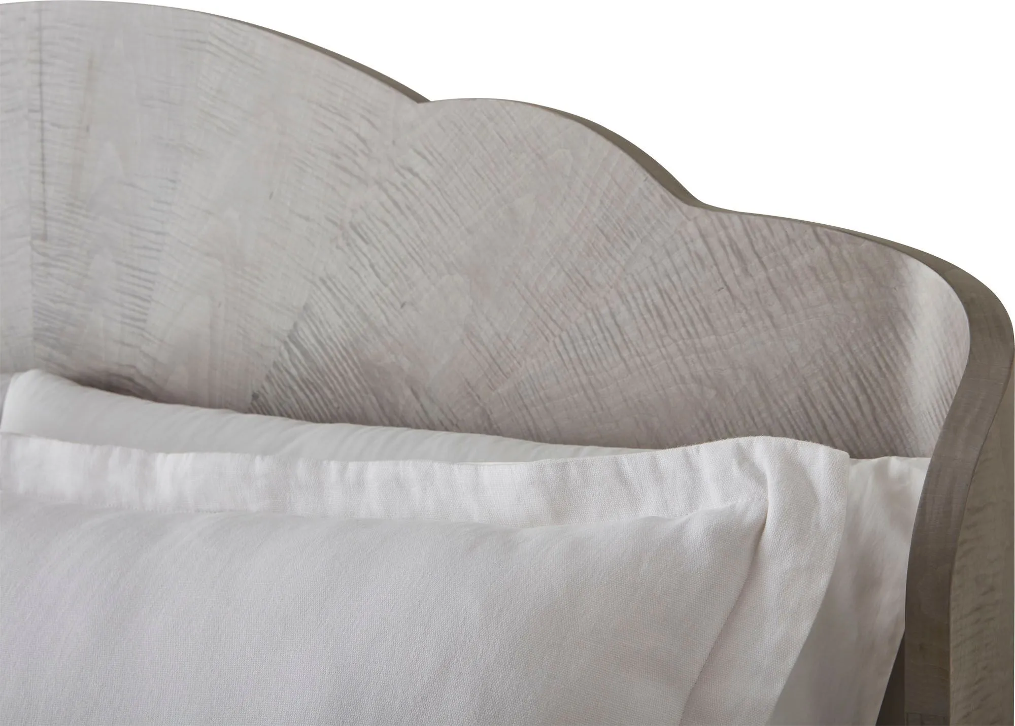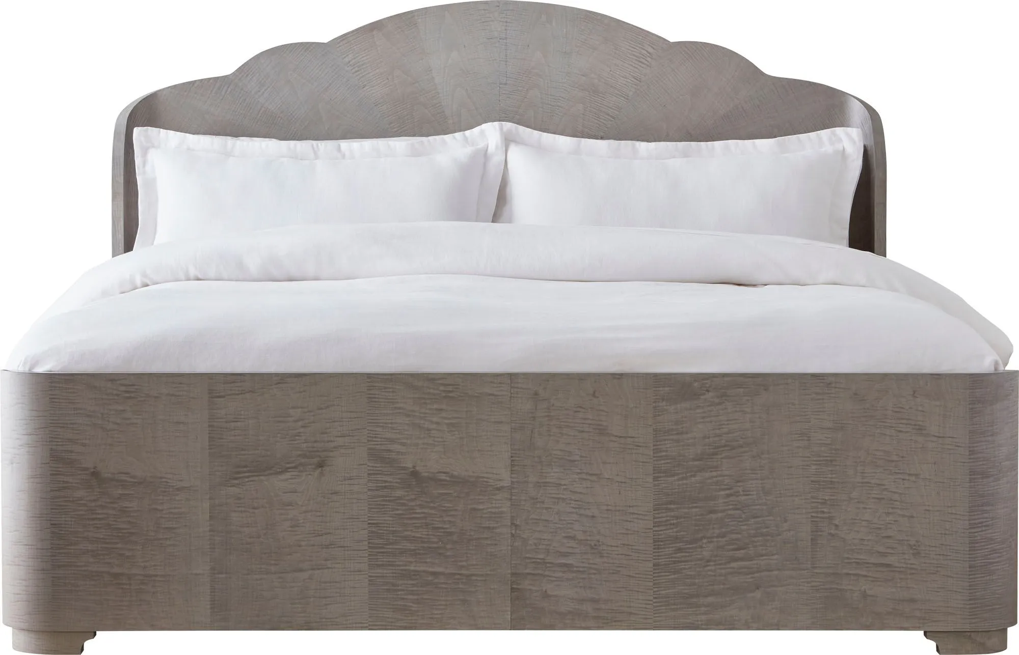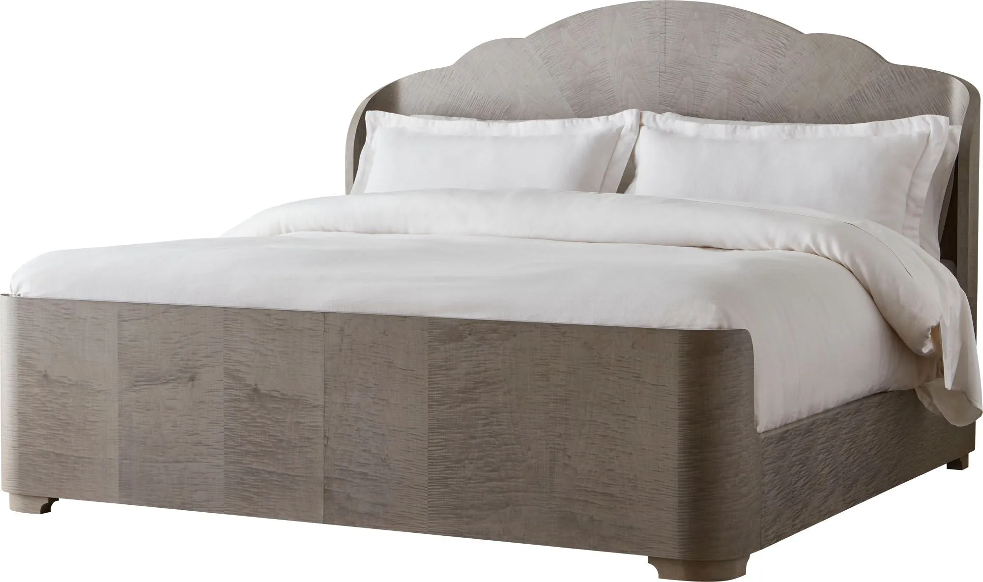 The Adriana Bed appears both soft and striking. Its pillowed silhouette is crafted in figured English sycamore for a rich, radiant look.