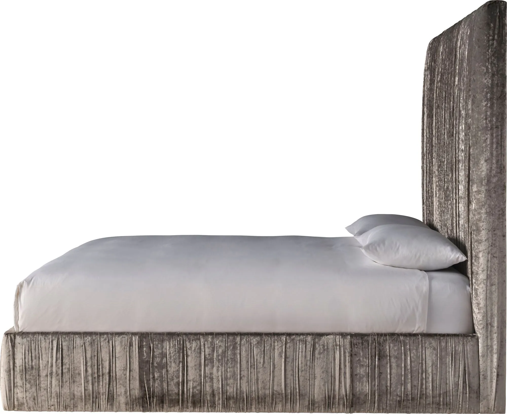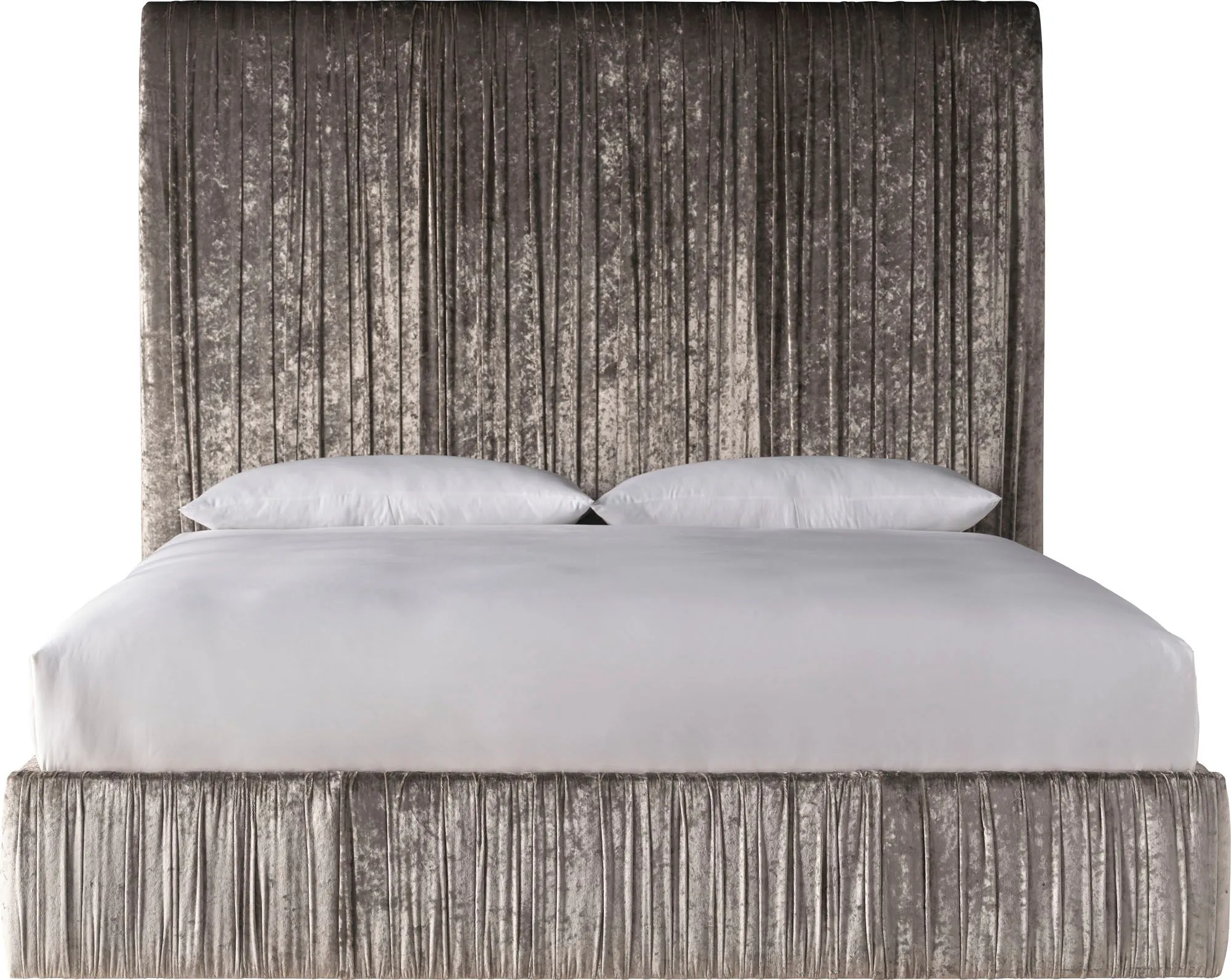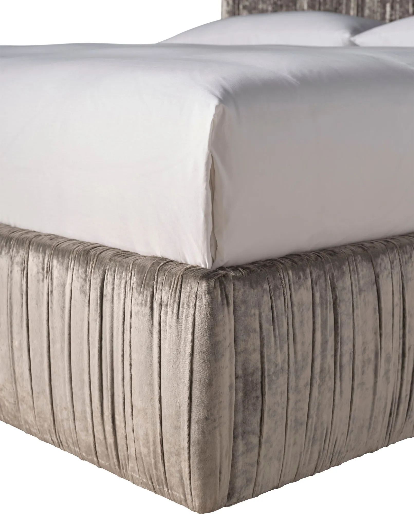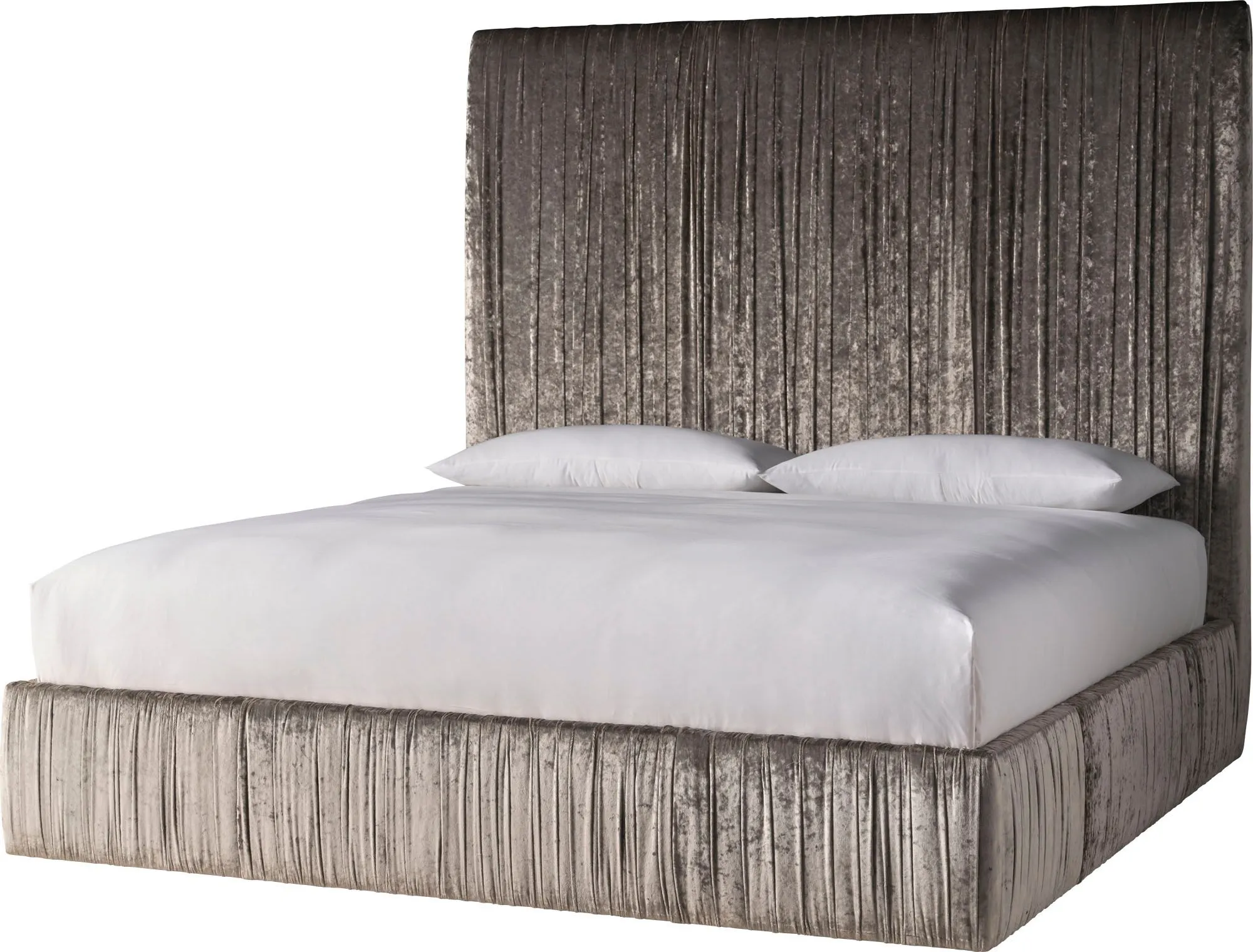 The gathered and pleated fabric of the Fosser Bed is inspired by the linear fissures left by volcanic formations on the earth’s surface to create a modern eye-catching effect.