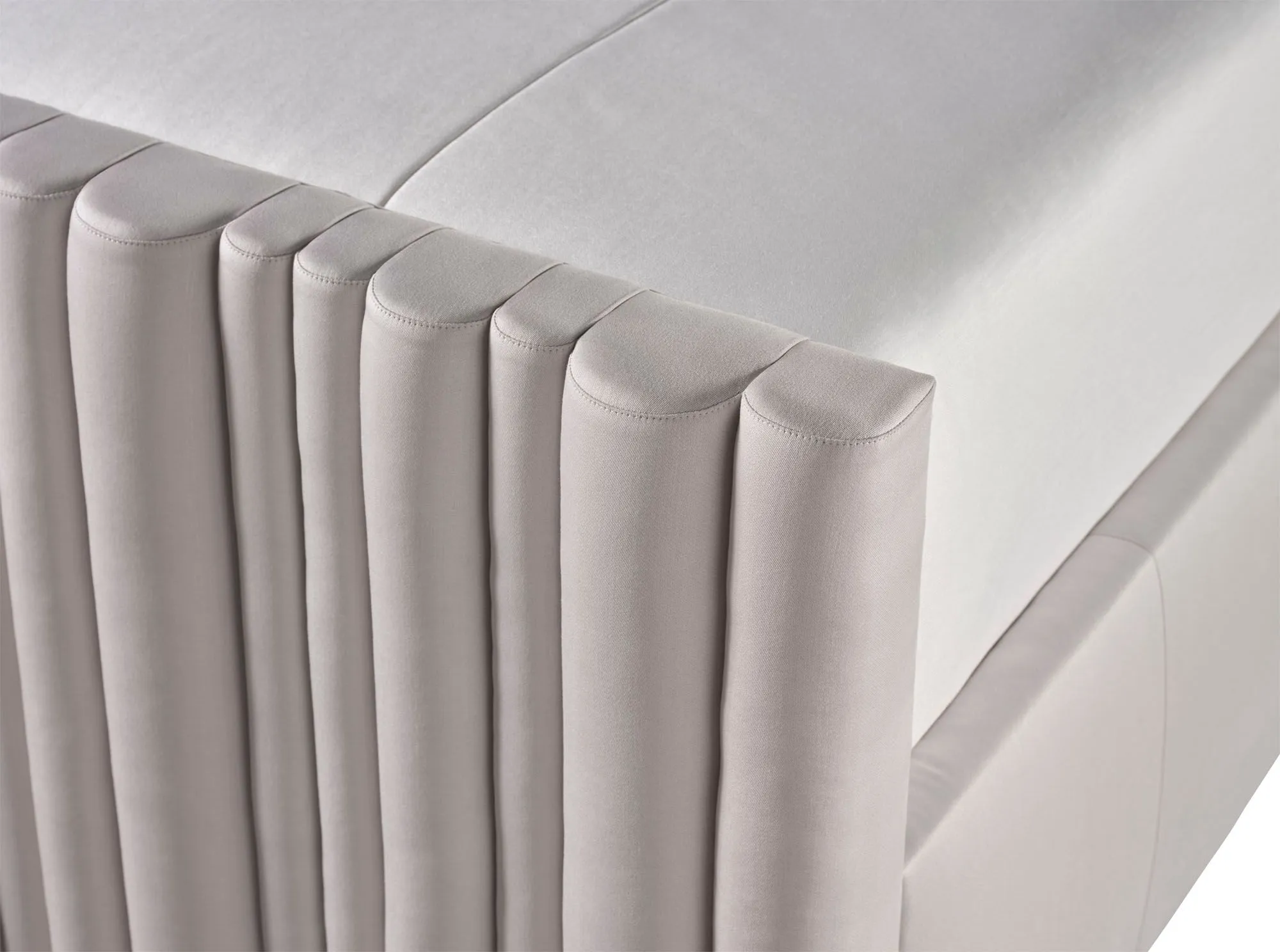 The Viscous Bed is notable for its fully upholstered channels of varying sizes, a design feature inspired by the slow and deliberate flow of lava down a volcano’s steep slopes. The bed gracefully captures the gentler side of one of nature’s most powerful forces.