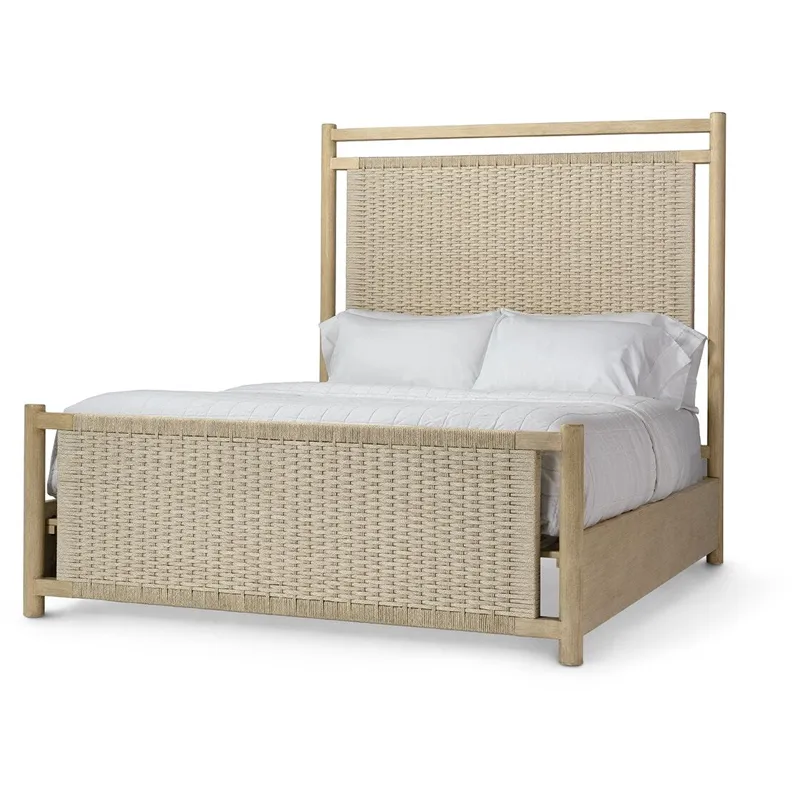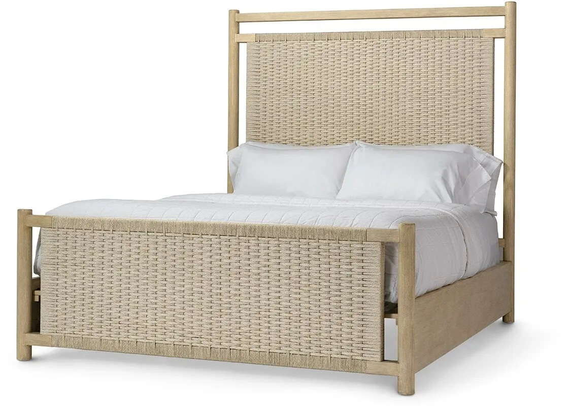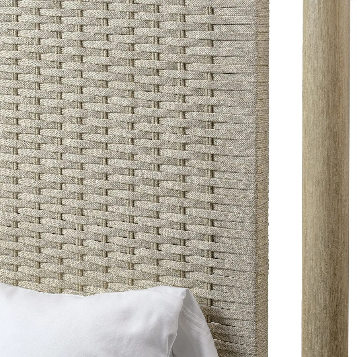 Hand-distressed hardwood frame in a natural wood tone finish accented with an off-white wash featuring hand-woven synthetic rope headboard and footboard in taupe. Side rails have adjustable heights of 2", 4" and 6" allowing a customized overall mattress height and can accommodate both a low-profile standard box spring and mattress. Box spring and mattress are not included. Coordinates with the St. Helena collection.