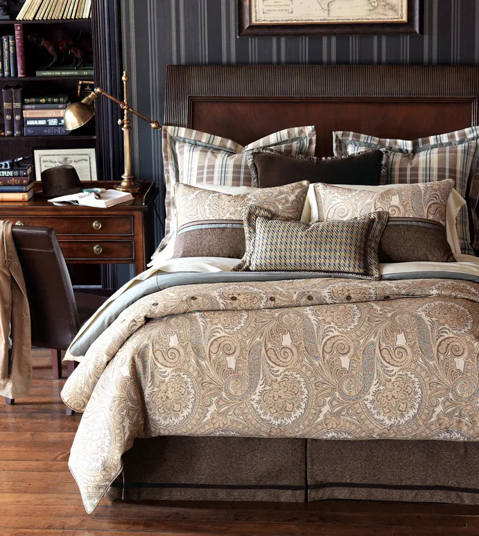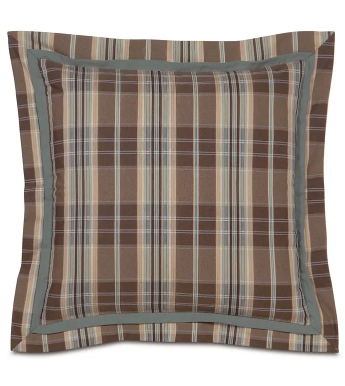 Euro sham in a brown plaid fabric Double mitered flange edge finish Cloud Faux Down pillow insert Zipper closure for easy care Dry clean only Note: In order to avoid fabric waste, the pattern in the euro shams may not be perfectly centered. We will always attempt to create the best fit possible. However, if you require a perfectly centered cut, please contact our Custom department. Note: Witcoff fabrics are reversible. One side of this fabric is shiny and the other side is matte. The Powell collection uses the matte side of this fabric. If you wish to change the side of the Witcoff fabric used on your order to the one that is not used on the standard product, you will need to contact our Custom Department for a custom quote.
