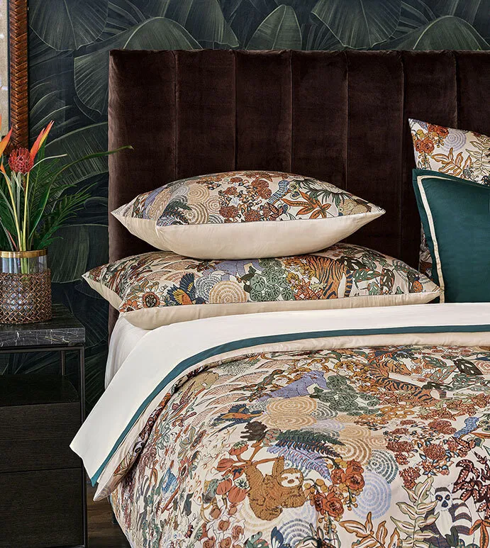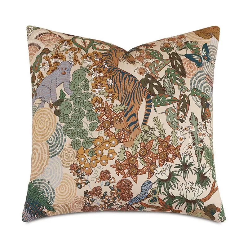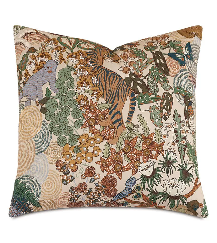- Euro sham with a jungle print pattern on face
