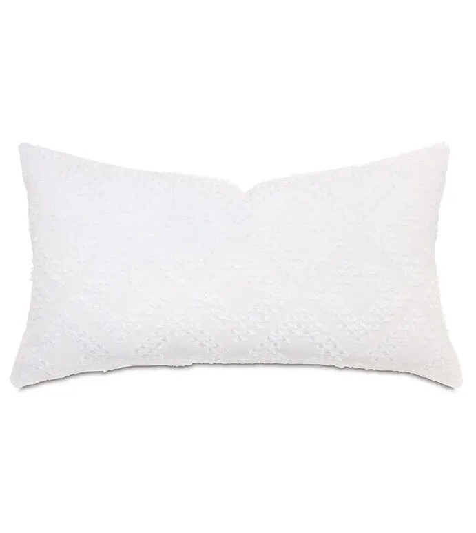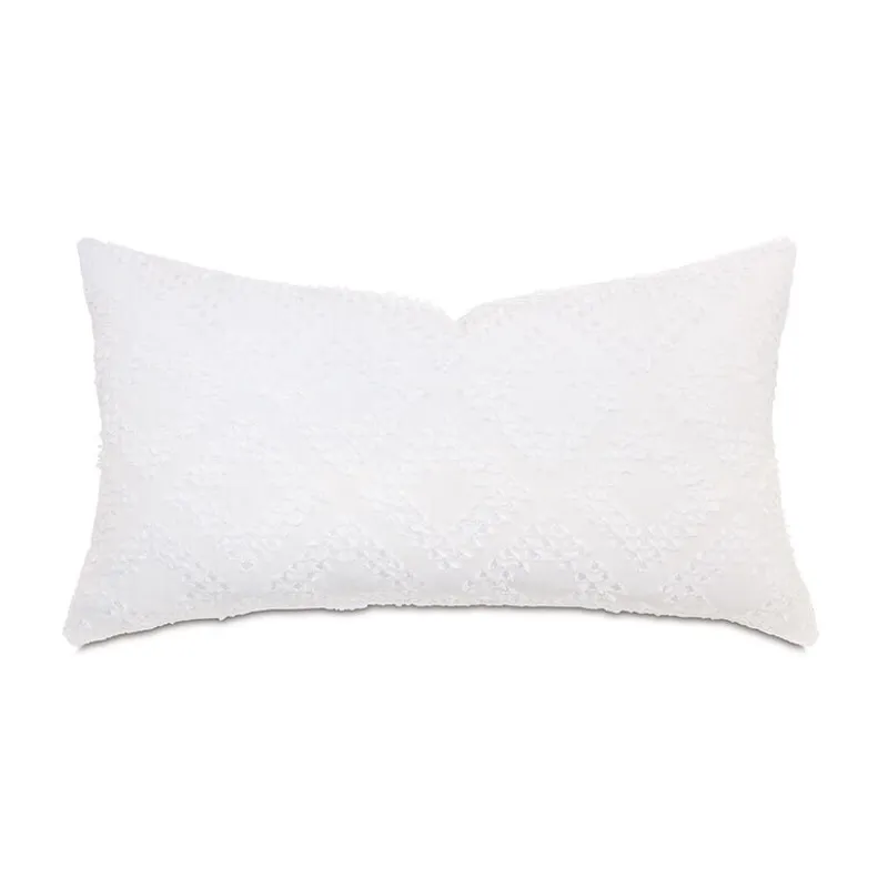 - Fil-coupe woven embroidery forms a geometric diamond pattern on fabric face