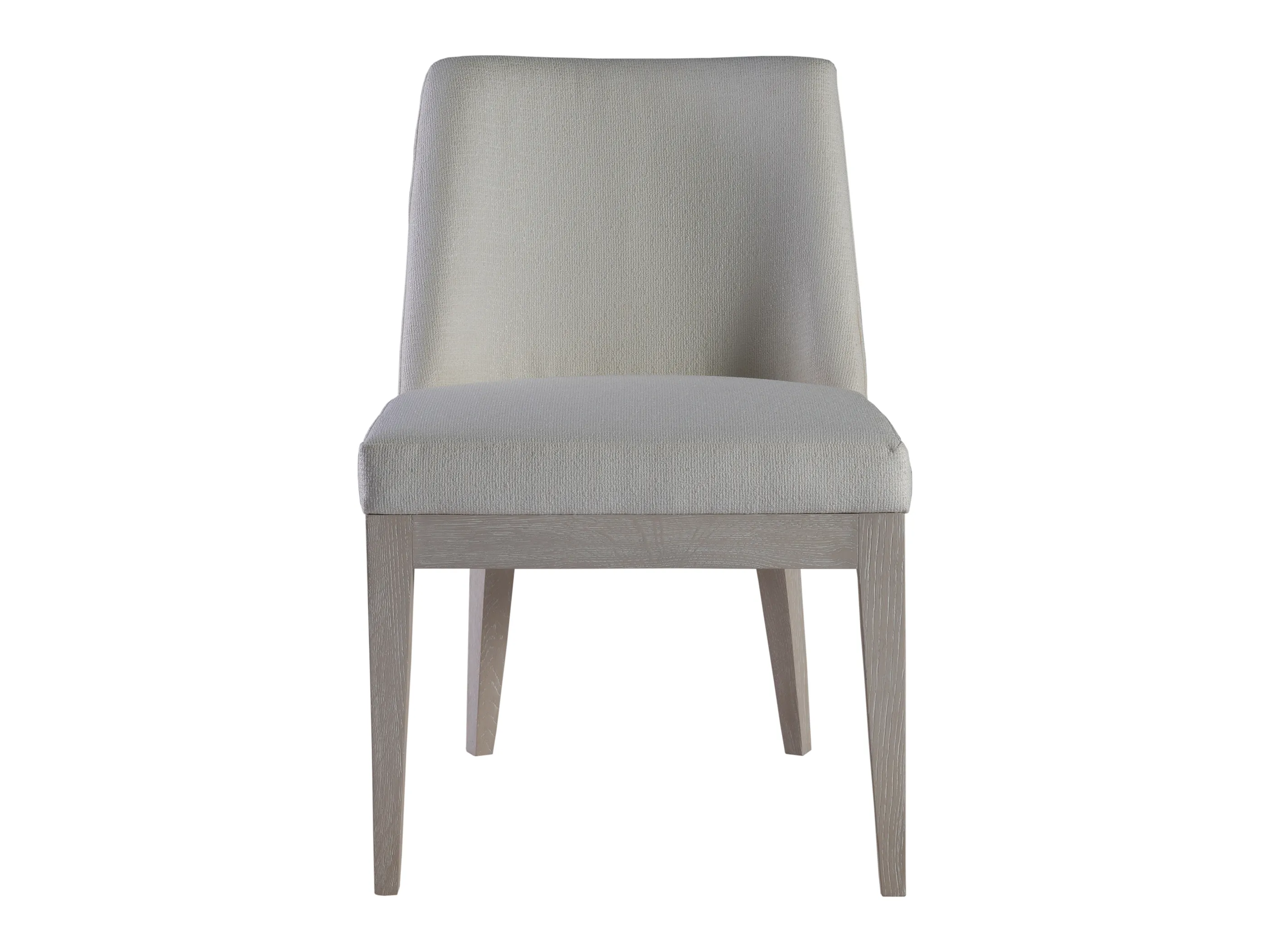 Transitional, low back dining chair in solid oak with a shaped horizontal span supporting the back, which has been socked on in the European fashion rather than trimmed with welt. Available as shown in fabric 2218-11, a tightly woven chenille construction with SmartCare protection.