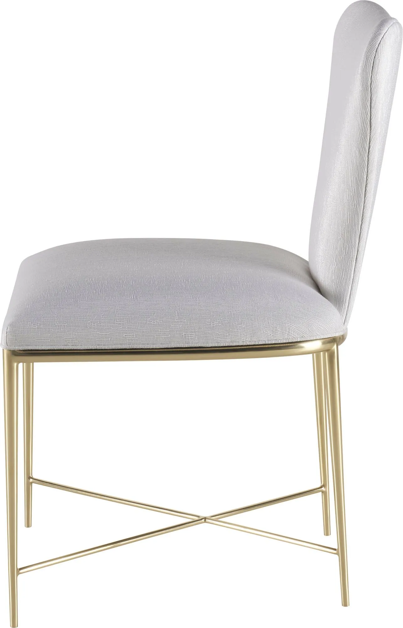 Featuring a frame in Pure Brass, the Clara Chair is an expressly feminine choice with a relaxed elegance. The chair’s silhouette is inspired by the shape of clutch handbags that were fashionable in the 1980s.