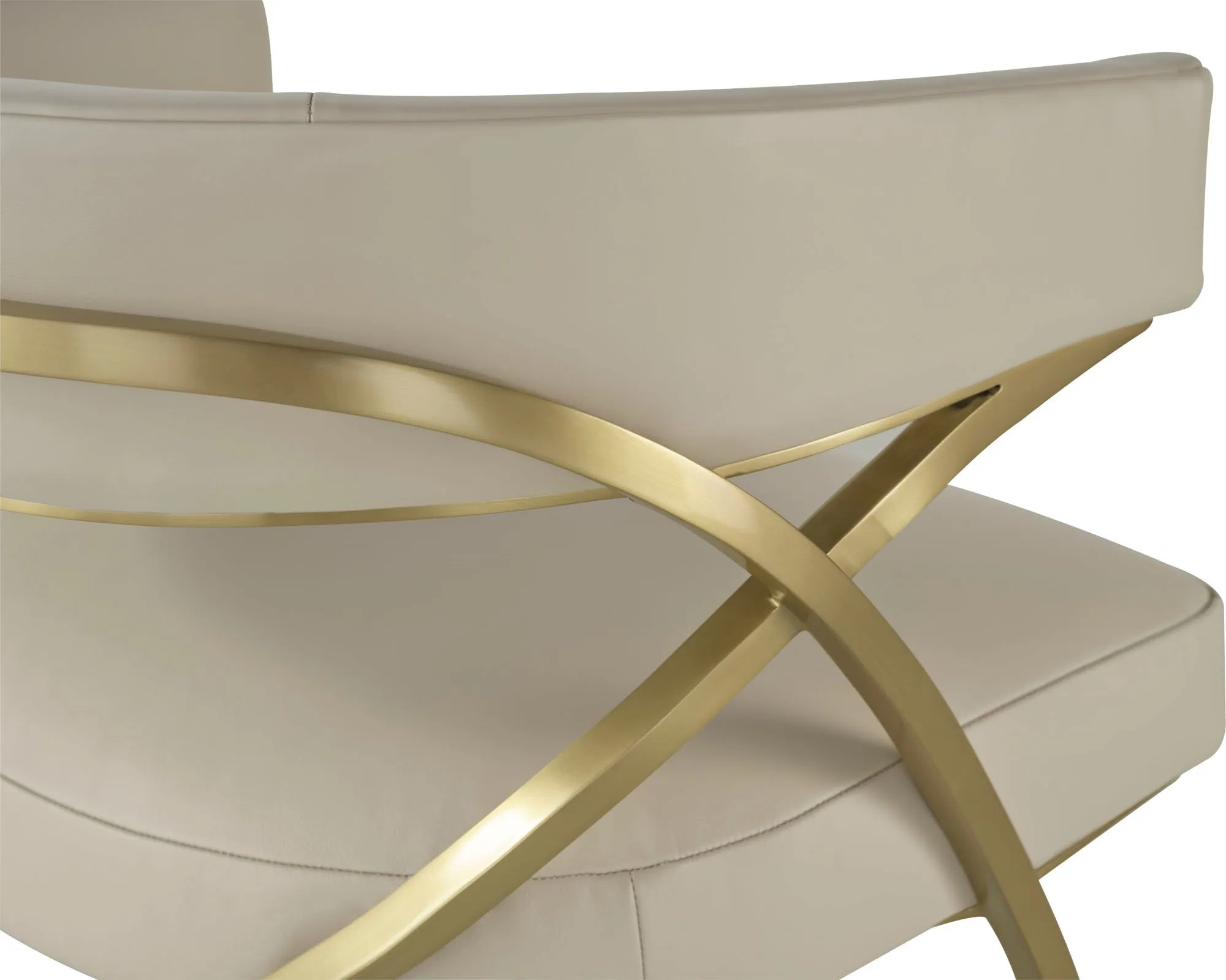 With intersecting lines and a bronze frame, the Collar Chair represents a bold convergence of shaping and material. The piece features a finely upholstered seat and back.