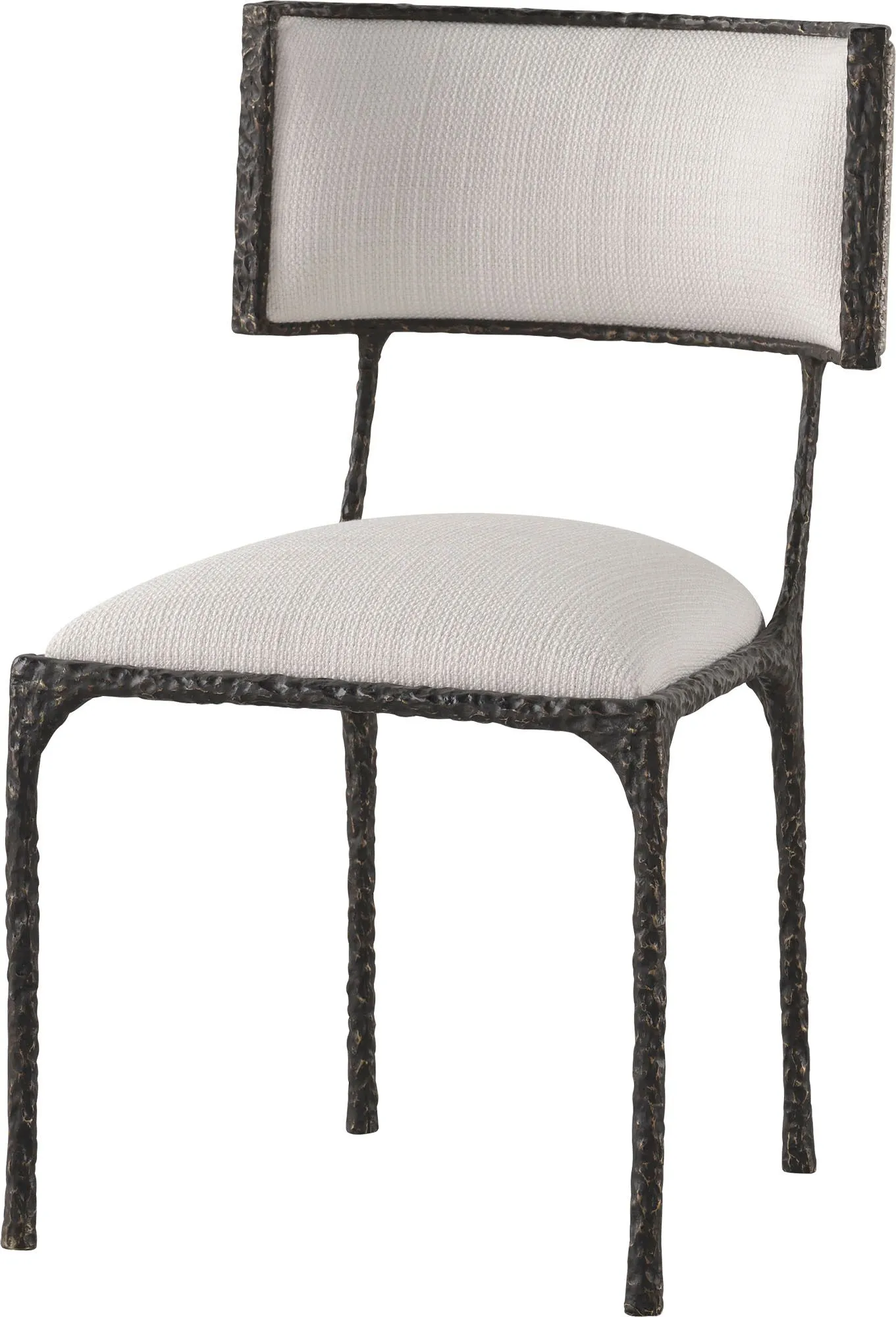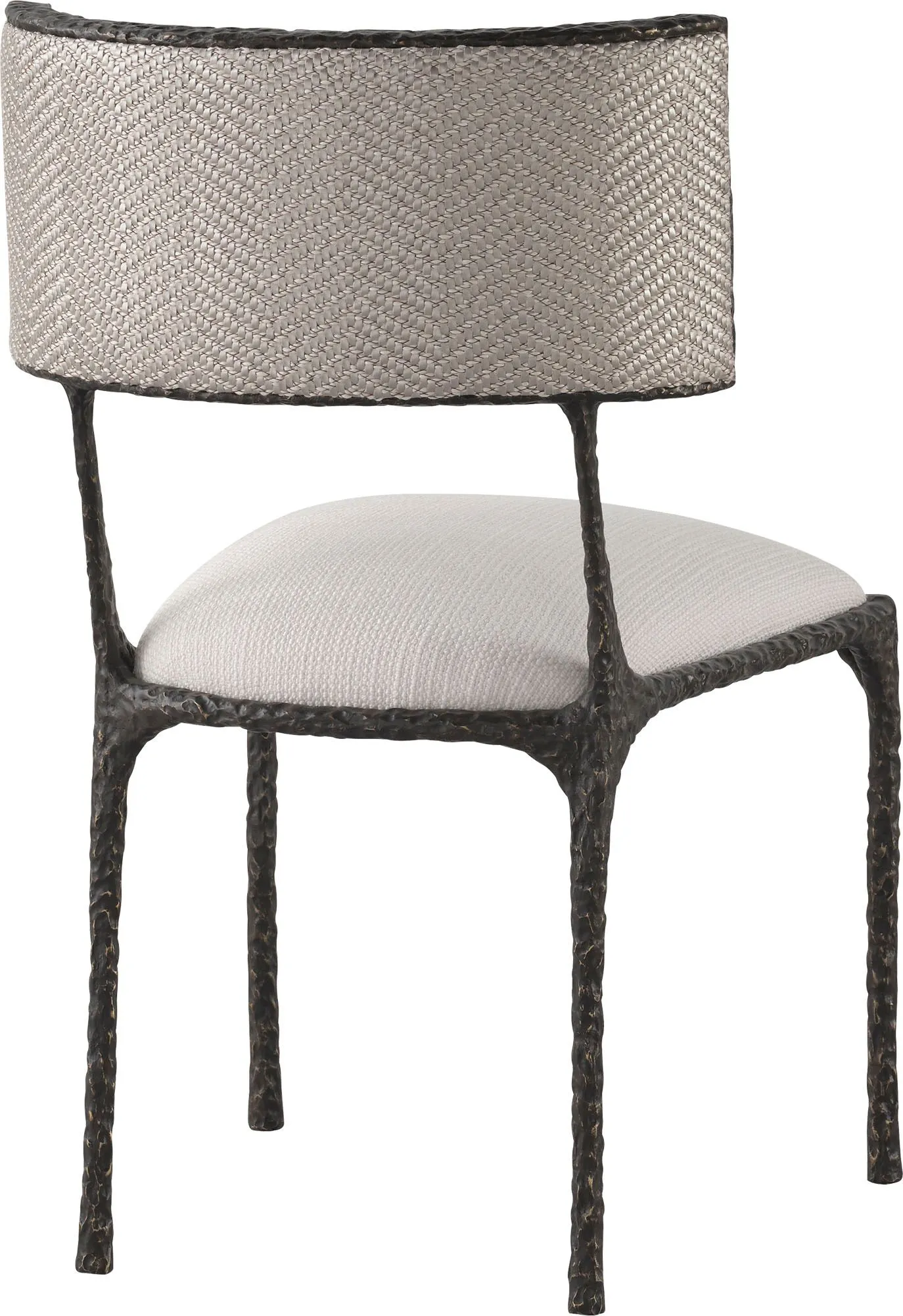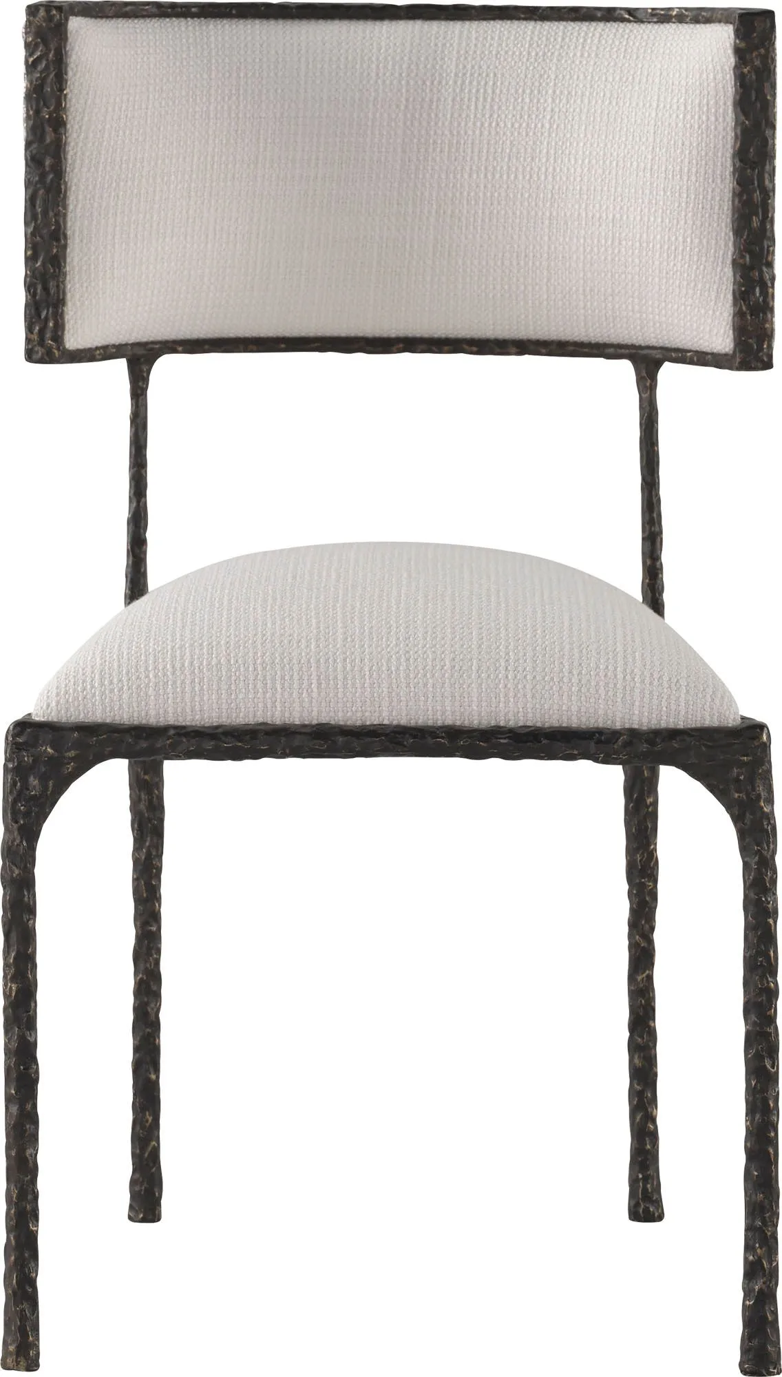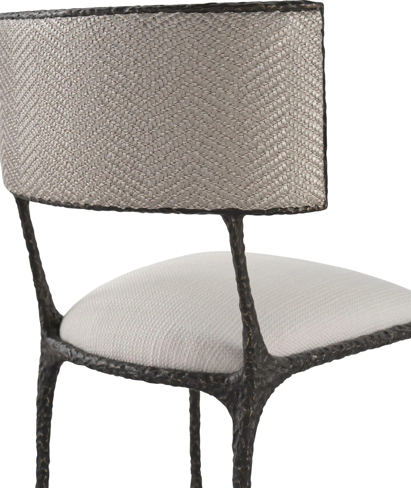 The Fira Dining Chair is a classic and fluid form that has the solidity of quickly cooled earth following a lava flow. Named after the ancient Greek city that was lost to a volcanic eruption, this elegant piece pairs a deep bronze plated finish on cast aluminum with sophisticated upholstery.
