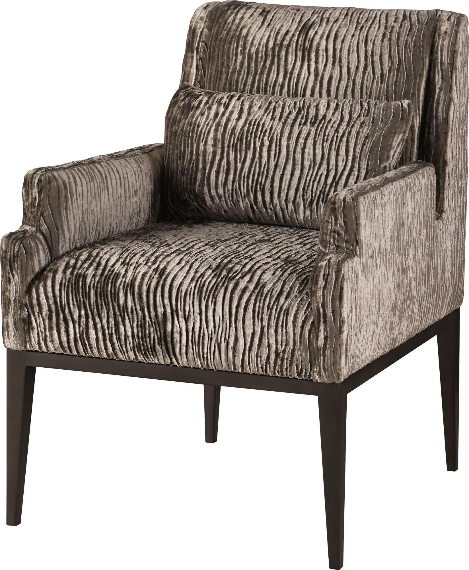 Finely upholstered with an exposed maple base, the Vesta Dining Chair captures the purity and refinement of its namesake goddess, known as the guardian of the hearth and home.