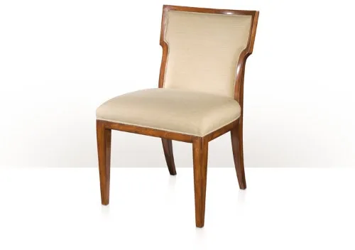 A mahogany side chair, the gently bowed and padded back with indicated wings above an upholstered seat on square tapering legs.