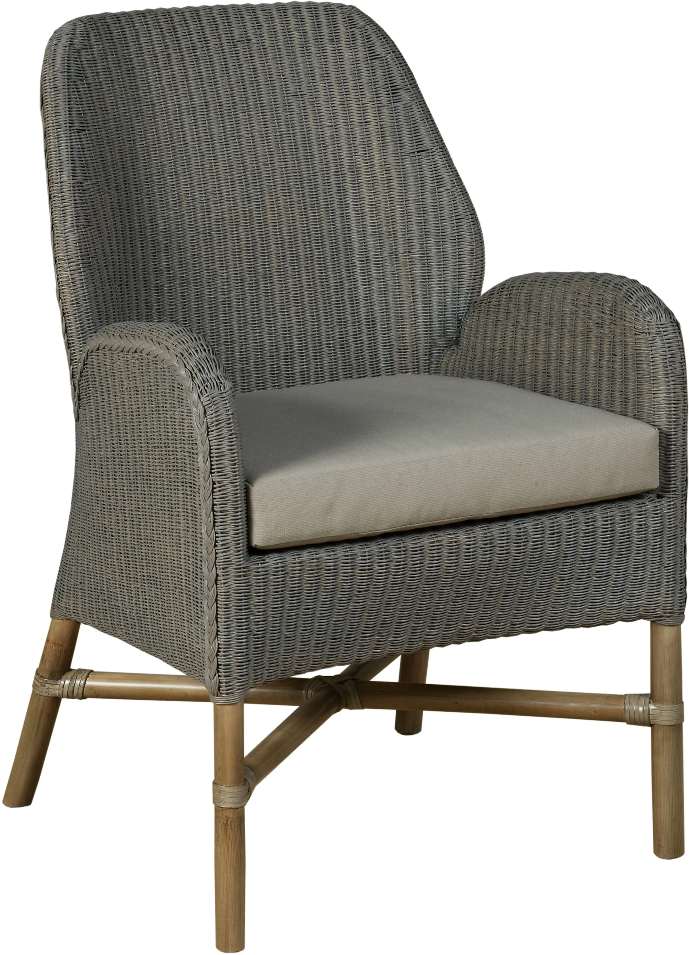 23" W x 24" D x 36" H Seat: 19" W x 18" D x 19-34" H Arm: 25-14" H Rattan and Loomed Wicker Finish 28 Gray Wash Indoor Use Only