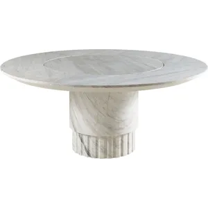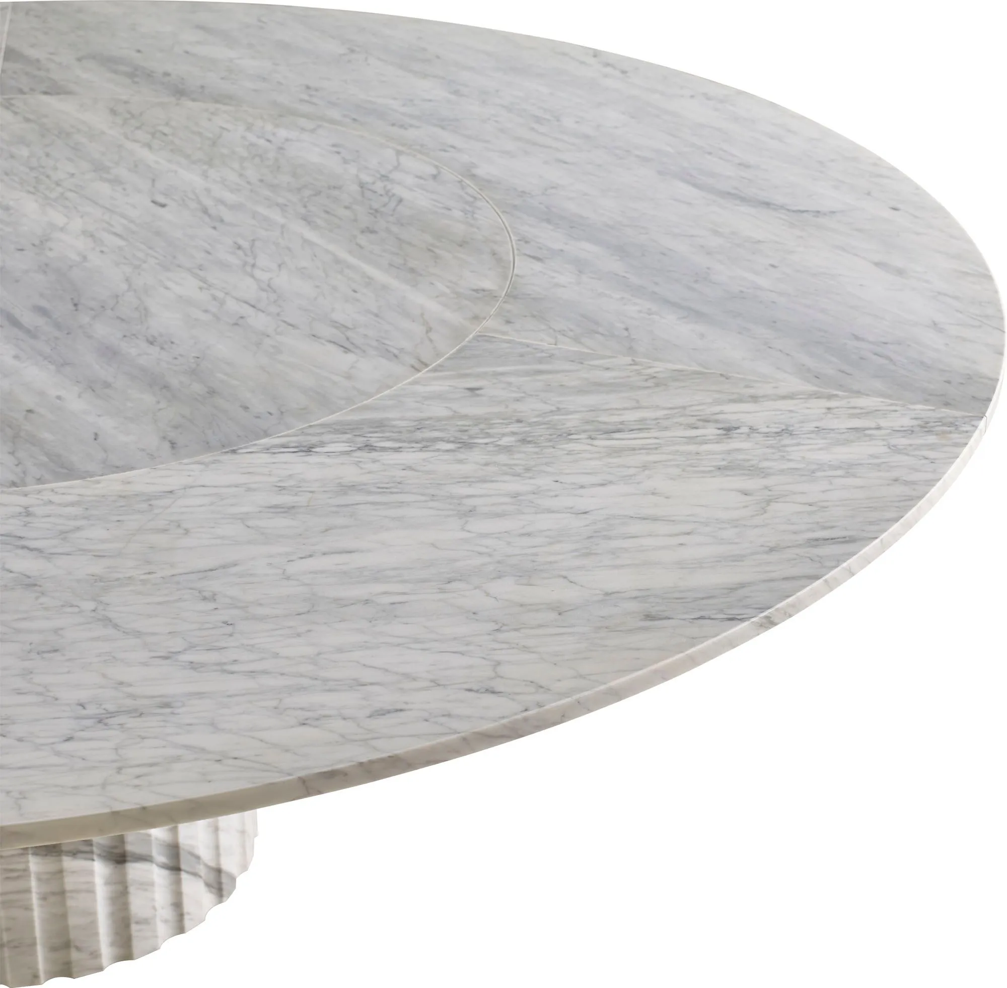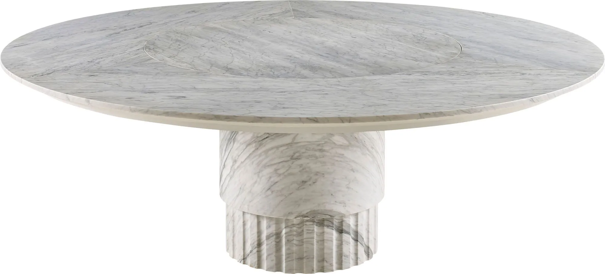 Strong and steadfast, the Agora Round Dining Table takes its cues from the neoclassical architecture of Ancient Greece. A Carrara marble tabletop with an inset and flush lazy susan that rests above a singular Carrara marble Doric-style column.