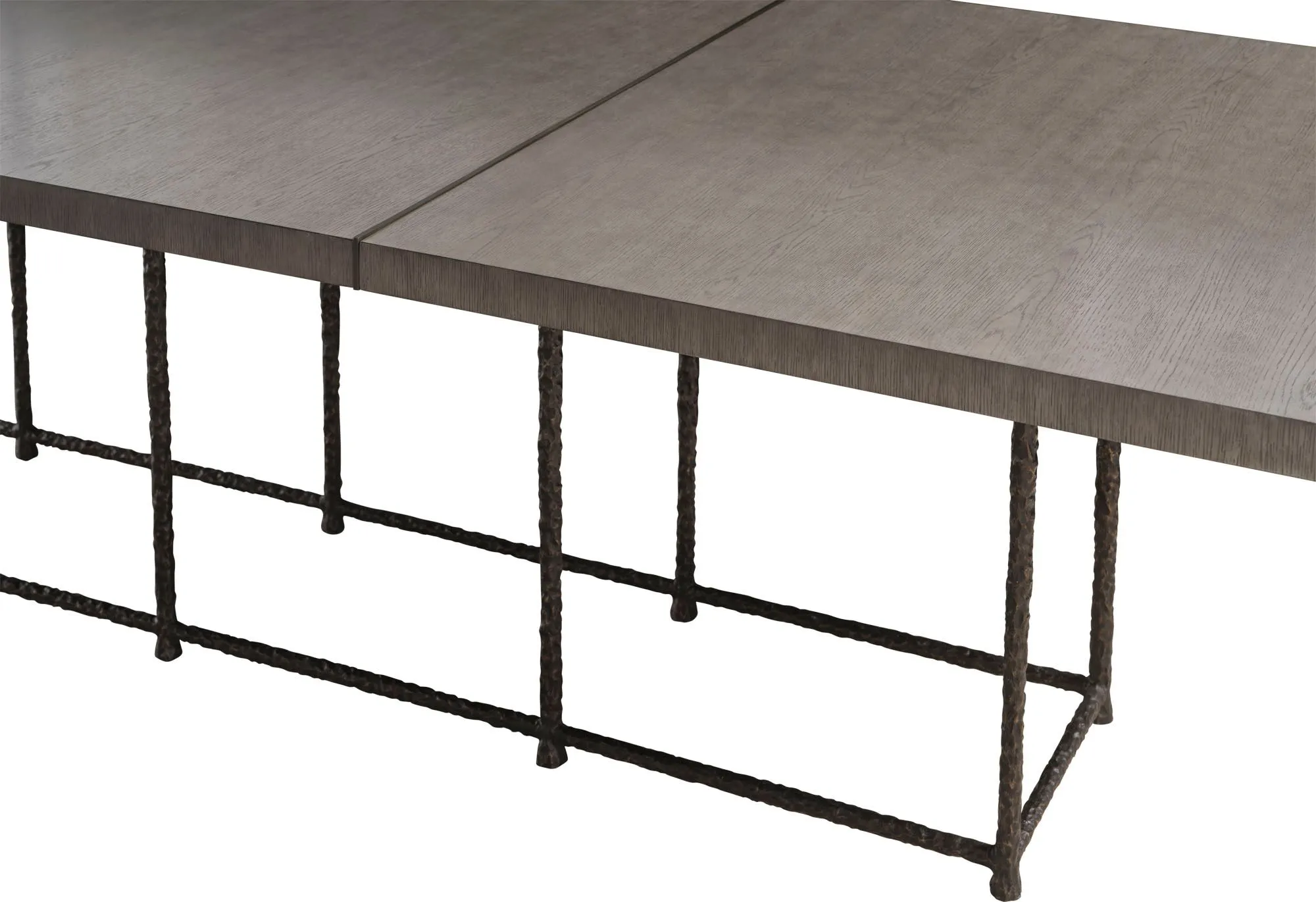 The Taupo 120” Rectangle Dining Table is inspired by the volcanic region on New Zealand’s North Island, home to unique geological patterns, waterfalls and hot springs. The design explores the merging of oak veneer and cast bronze, with a bronze detail emerging through the tabletop to display the beauty and imagination of contrasting elements.
