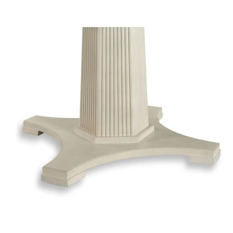 A simply gorgeous table adapted from the 19th century English regency style. A circular top is veneered in a sunburst pattern over a delicate apron rail supported by a central tapered hexagon column that is accented with reeded details mounted to a quatrefoil shaped base.