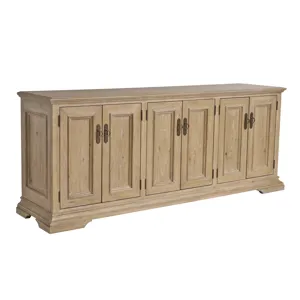 For those who never seem to have enough storage space, the 78-inch Bayside buffet is a stylish solution. Four full-extension self-closing drawers are felt lined, with one divided for silver. Behind each pair of doors are two large adjustable shelves. This statement piece is available in the Sandstone, Sailcloth, Marine or Seaglass finishes.