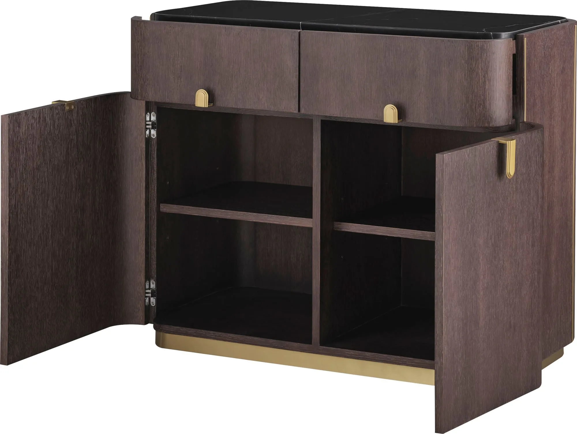 The 38” Wide 2 Door Credenza in marble and quartered oak is the perfect accompaniment to a Sit/Stand Desk or Fixed Height Desk. Add it to your home office or multi-functional space for a modern, design-forward vibe.