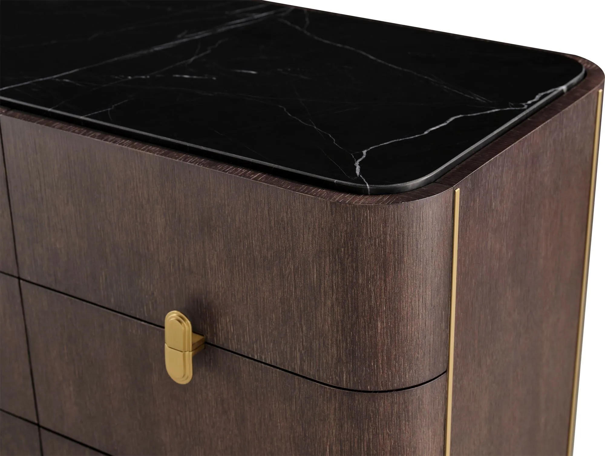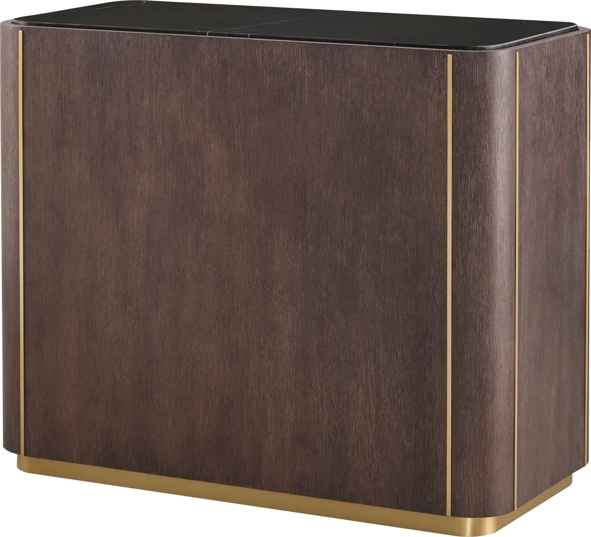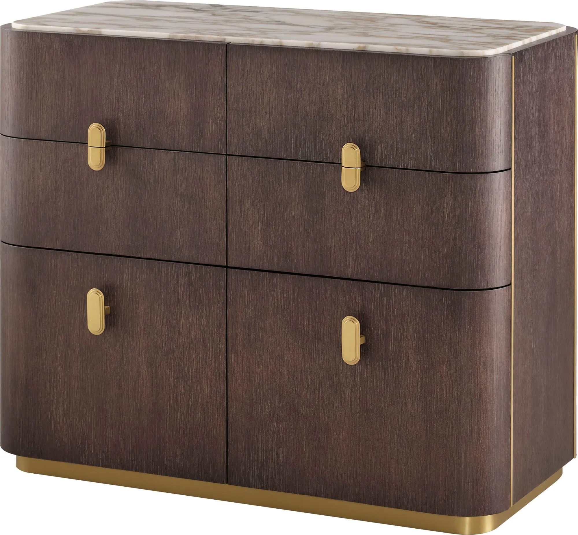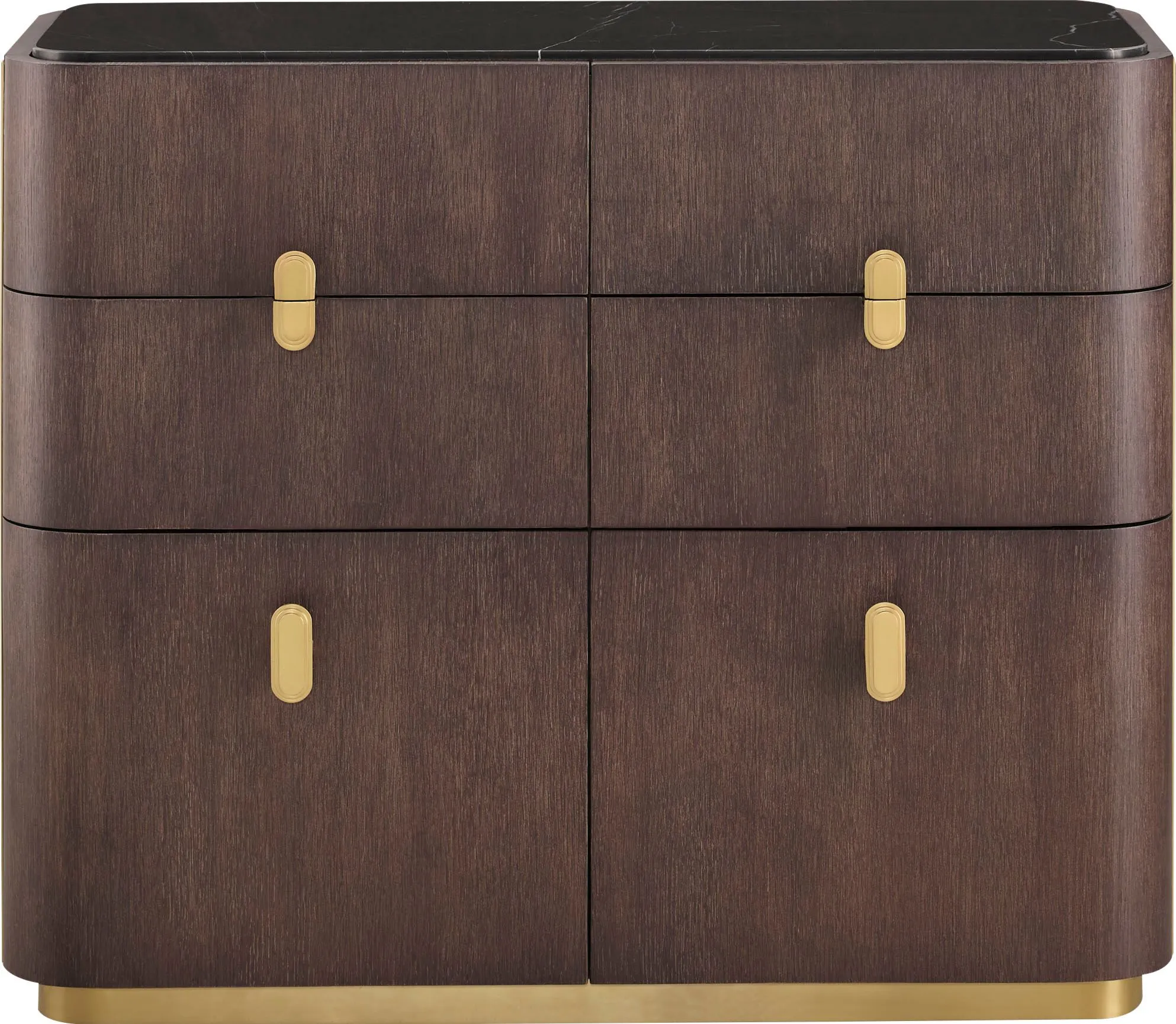 The 38” Wide 6 Drawer Credenza offers abundant storage with effortless modern style. Bronze reveals, cast bronze pulls, a marble top and quartered oak create a versatile look that complements the home office environment.