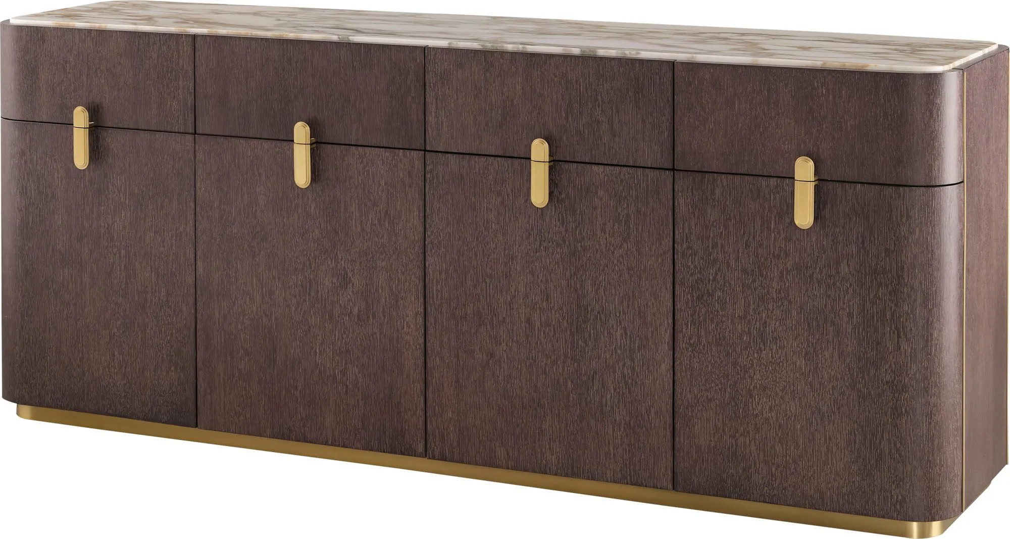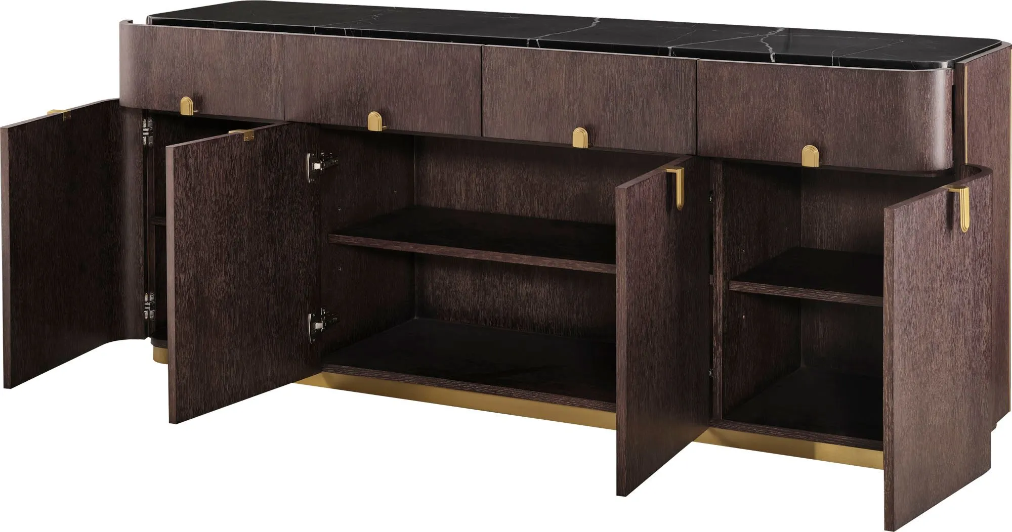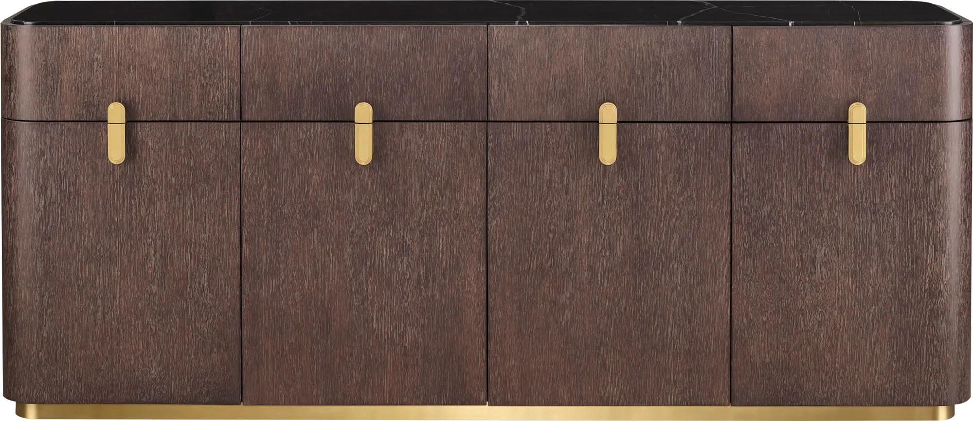 The 72” Wide 4 Door Credenza - Custom Finish is sleek and symmetrical, crafted from quartered oak with smooth rounded edges. Pair it with a desk to create a calming and comfortable workspace in any room of your home.