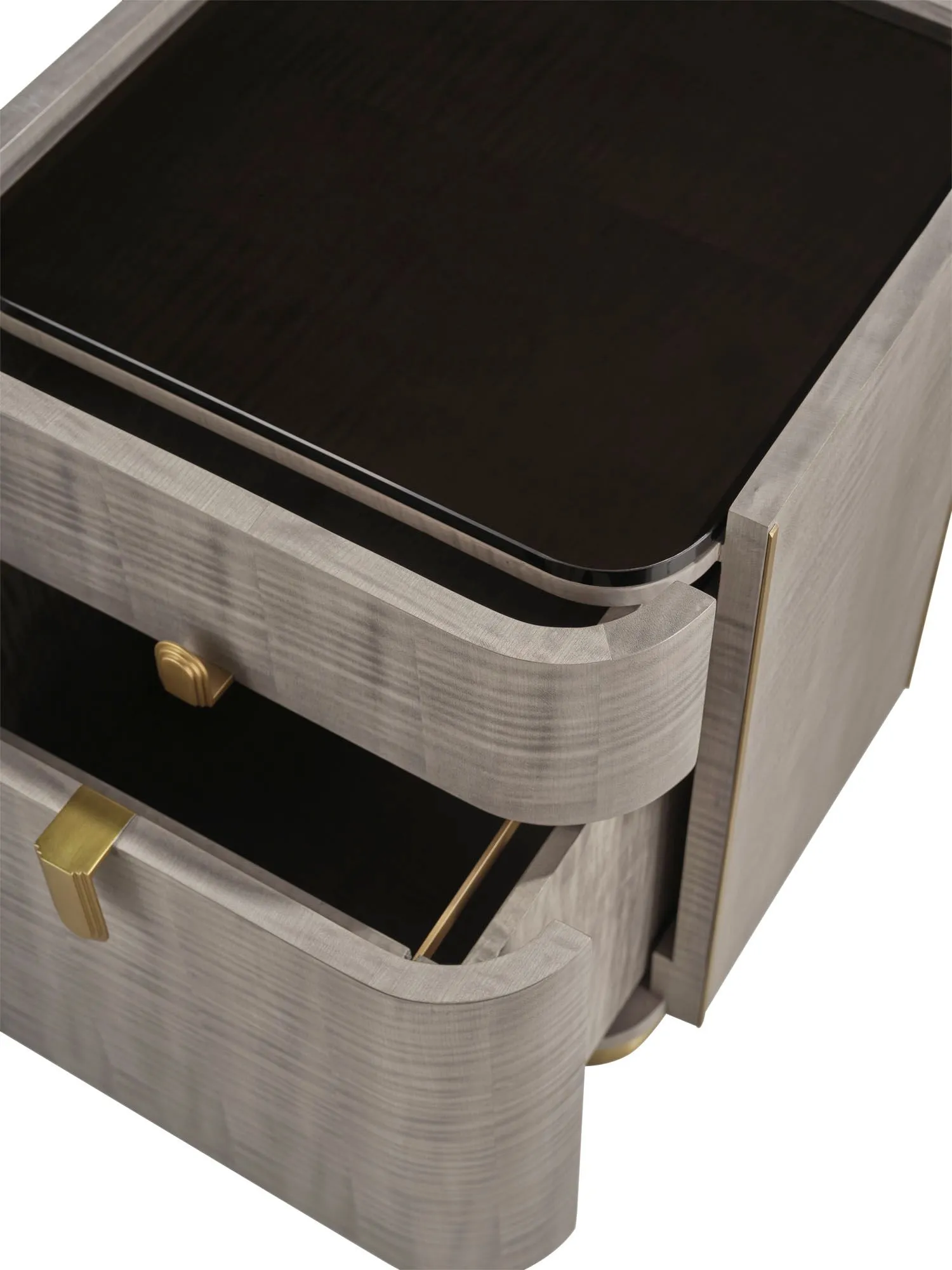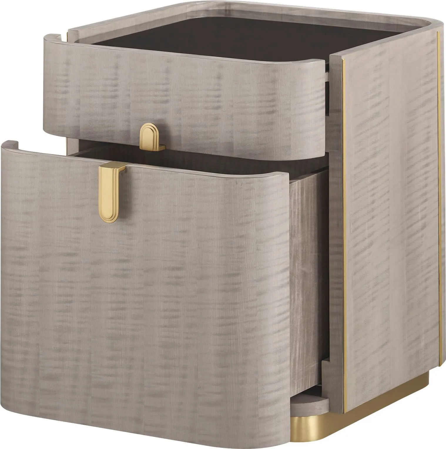 The Mobile Pedestal is sleek and modern, made from figured gray sycamore with rounded edges. The pedestal includes a castered base to provide storage where you need it—simply move it wherever the workday demands.