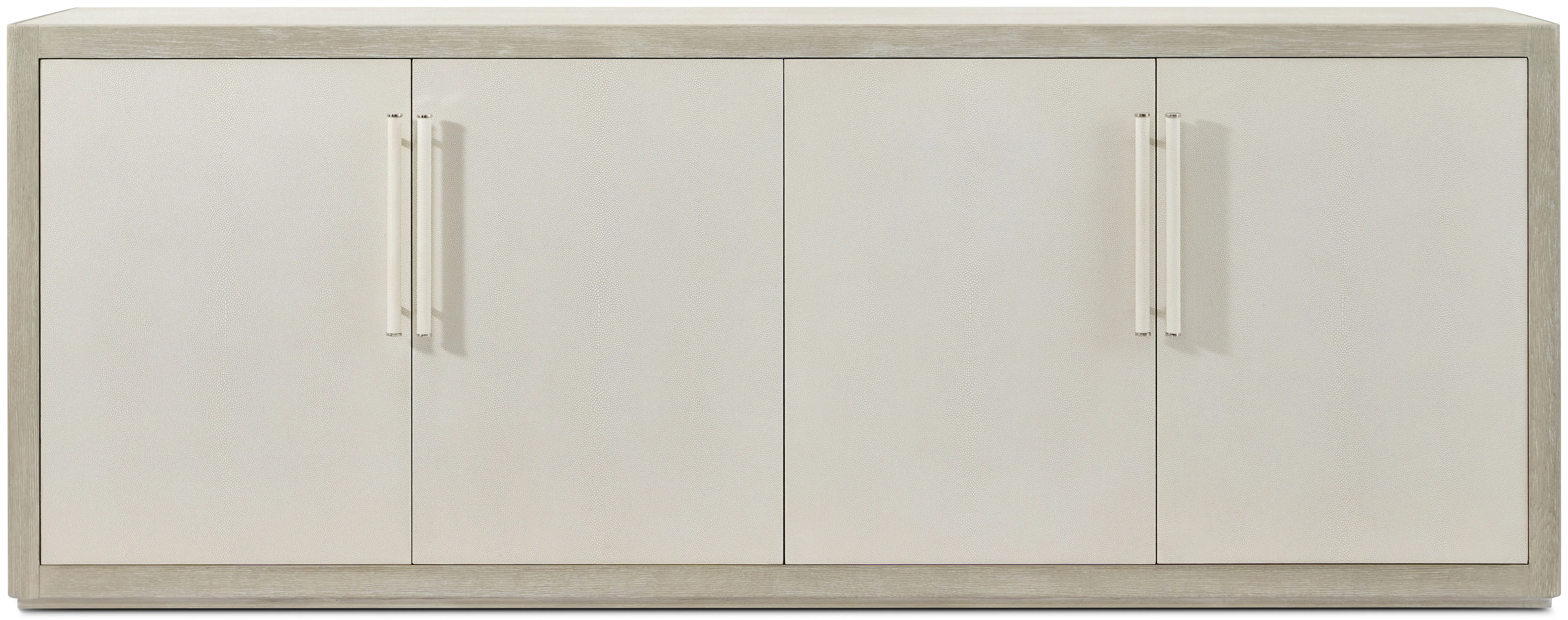 The Maxwell collection features textural shagreen surfaces and versatile oak furnishings in Obsidian and Cashmere finishes. Its sculptural design adds an elevated, modern touch to the spaces they inhabit.