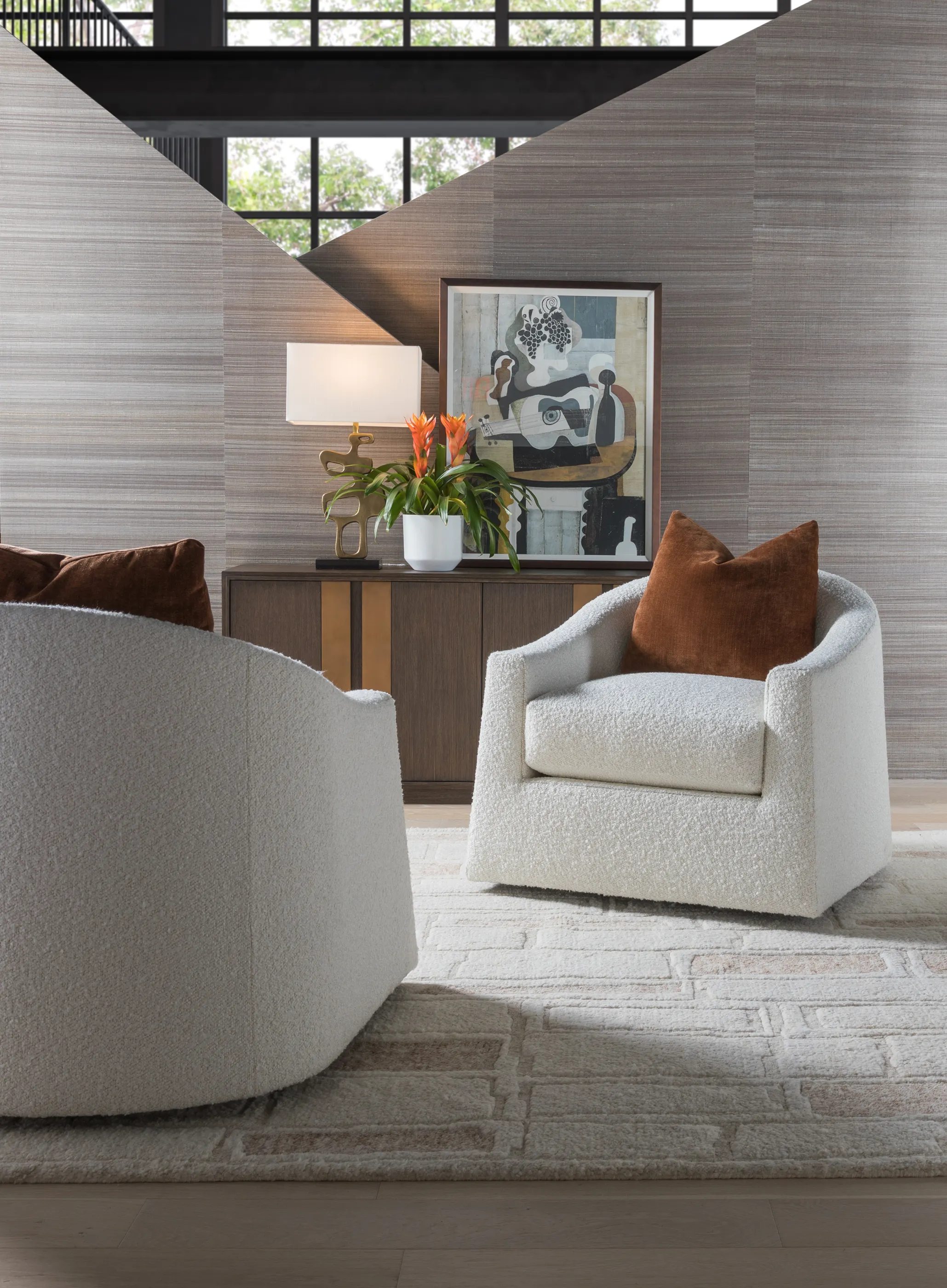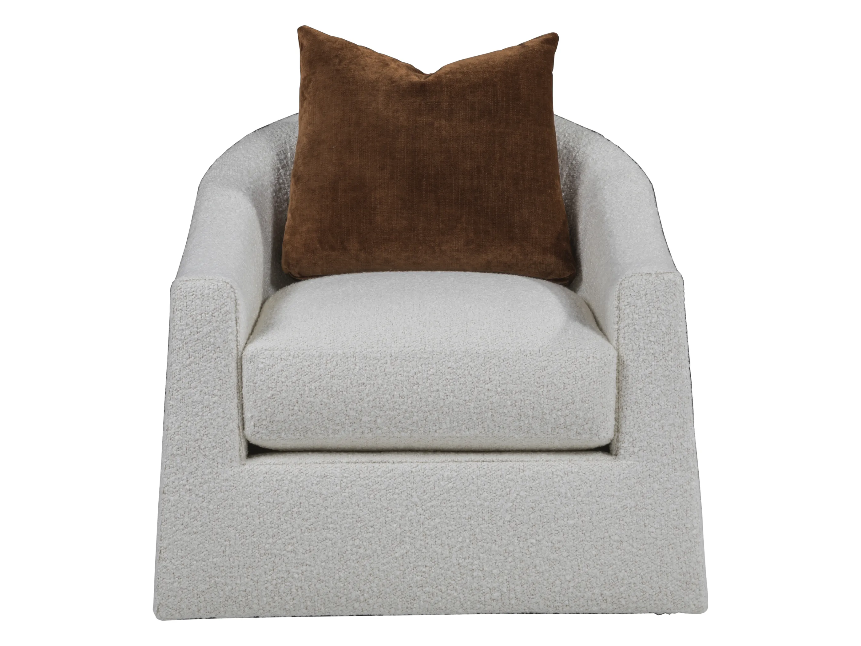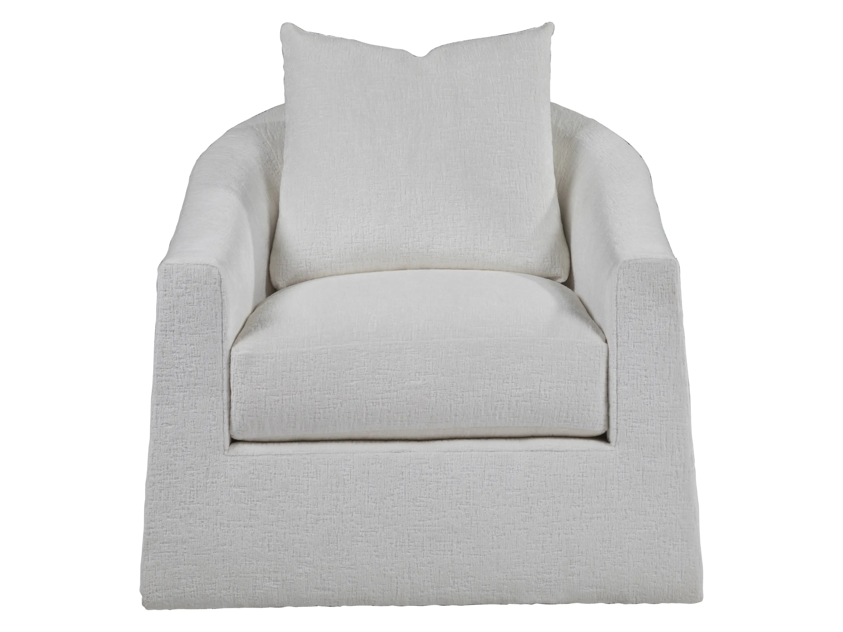 Transitional silhouette which tapers up in all directions from the base and trapezoidal arms that seamlessly meet the front panel. The tapered, bed pillow back softens the overall appearance and offers remarkable comfort along with the swivel mechanism for ease of motion.