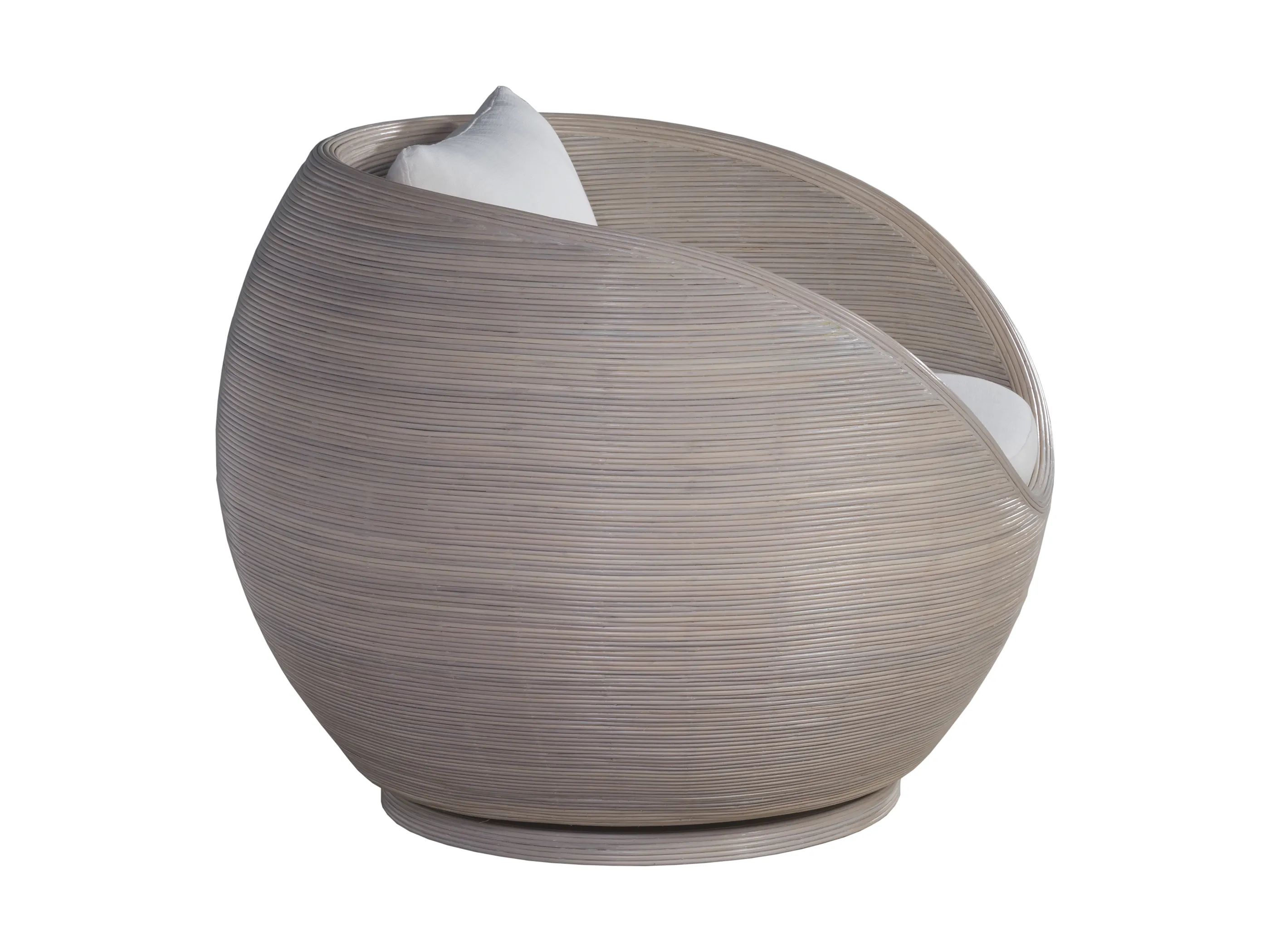 This 1960’s antique reproduction is a period-perfect represenation of Solimar’s vibe, featuring an orb silhouette wrapped in pencil rattan with a white wash finish revealing natural variation in the organic material. Available in COM or your choice of fabrics.