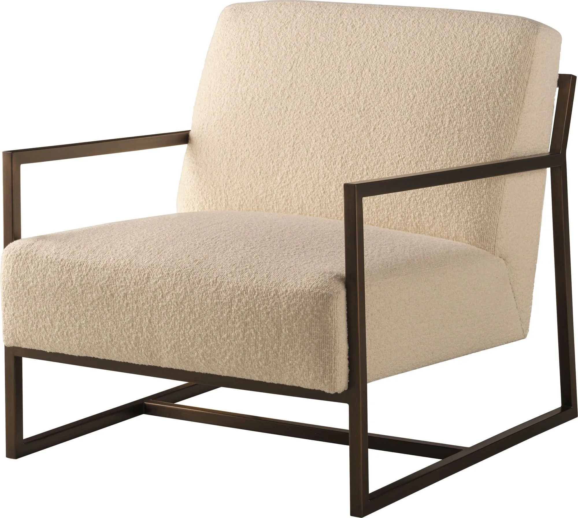 The Liam Lounge Chair is an exploration in fine materials, pairing a metal brushed antique bronze frame with a highly comfortable seat in your choice of fabrics.