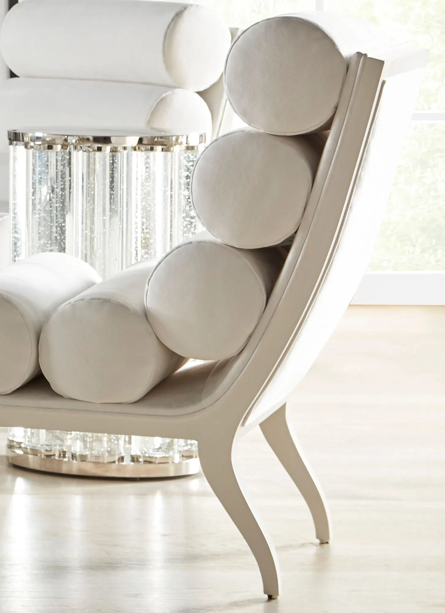 Inspired by classic Cartier bracelets that lay comfortably like a serpent, the Arlo Lounge Chair is a stylish piece defined by linear bolsters.