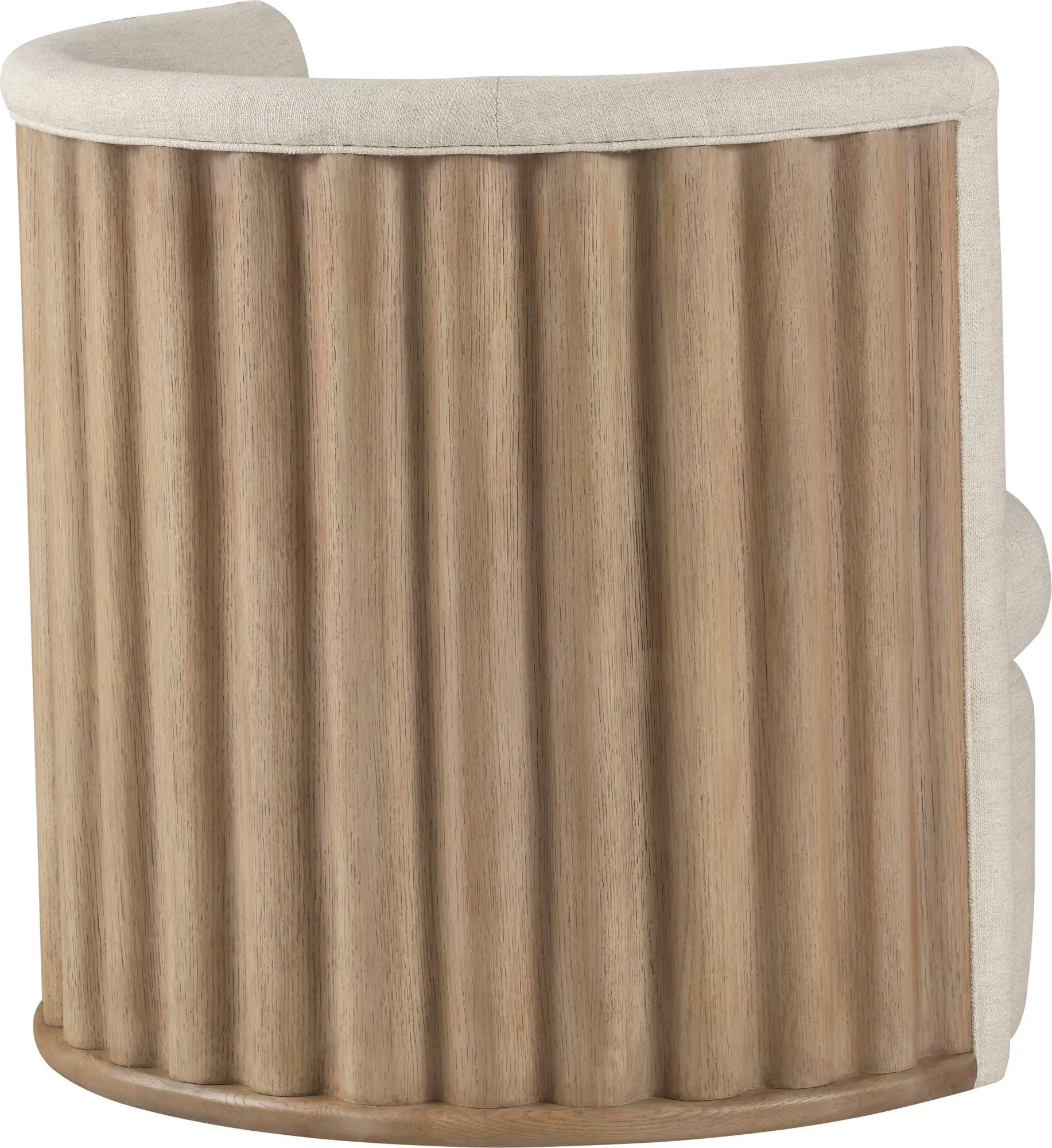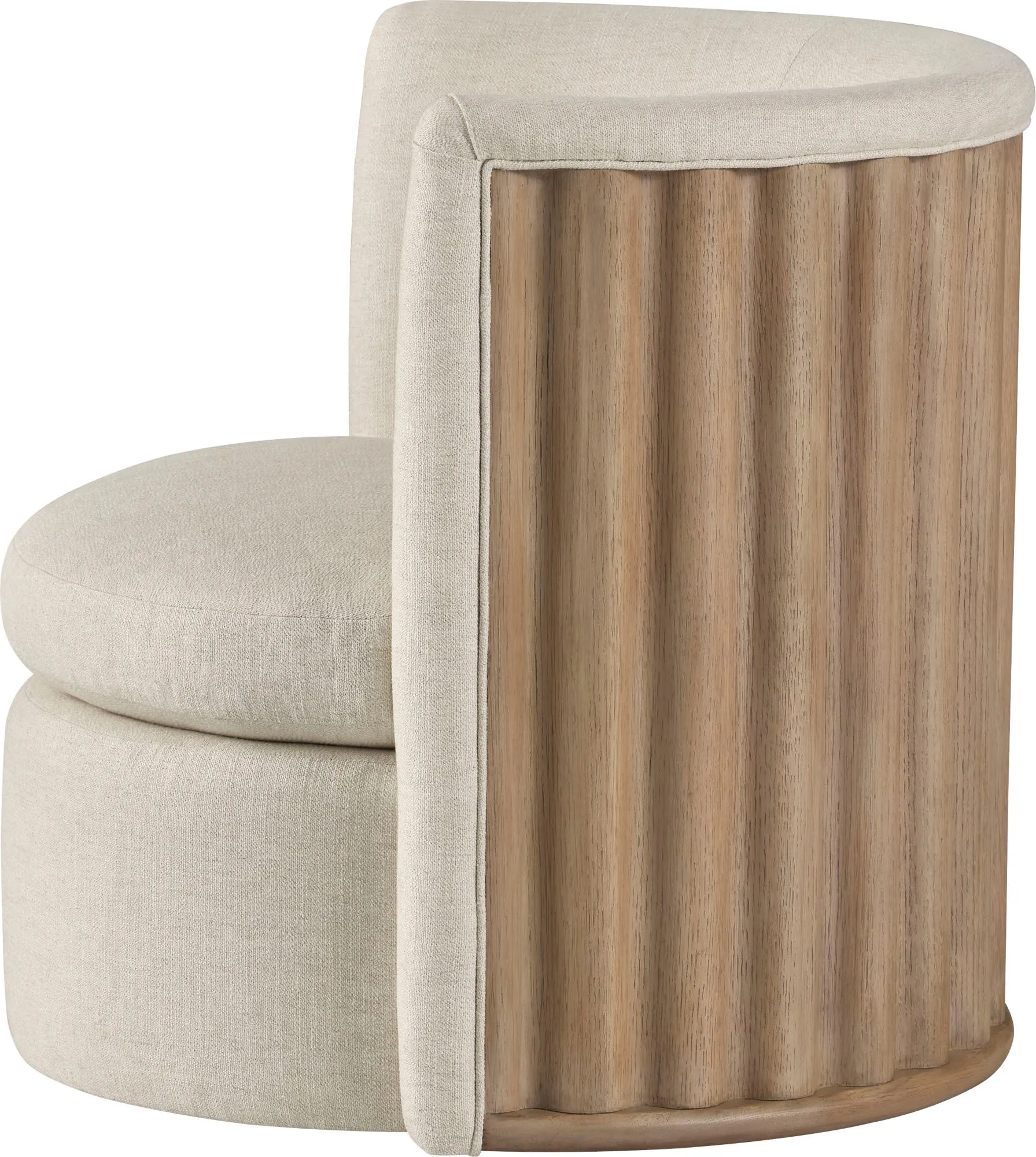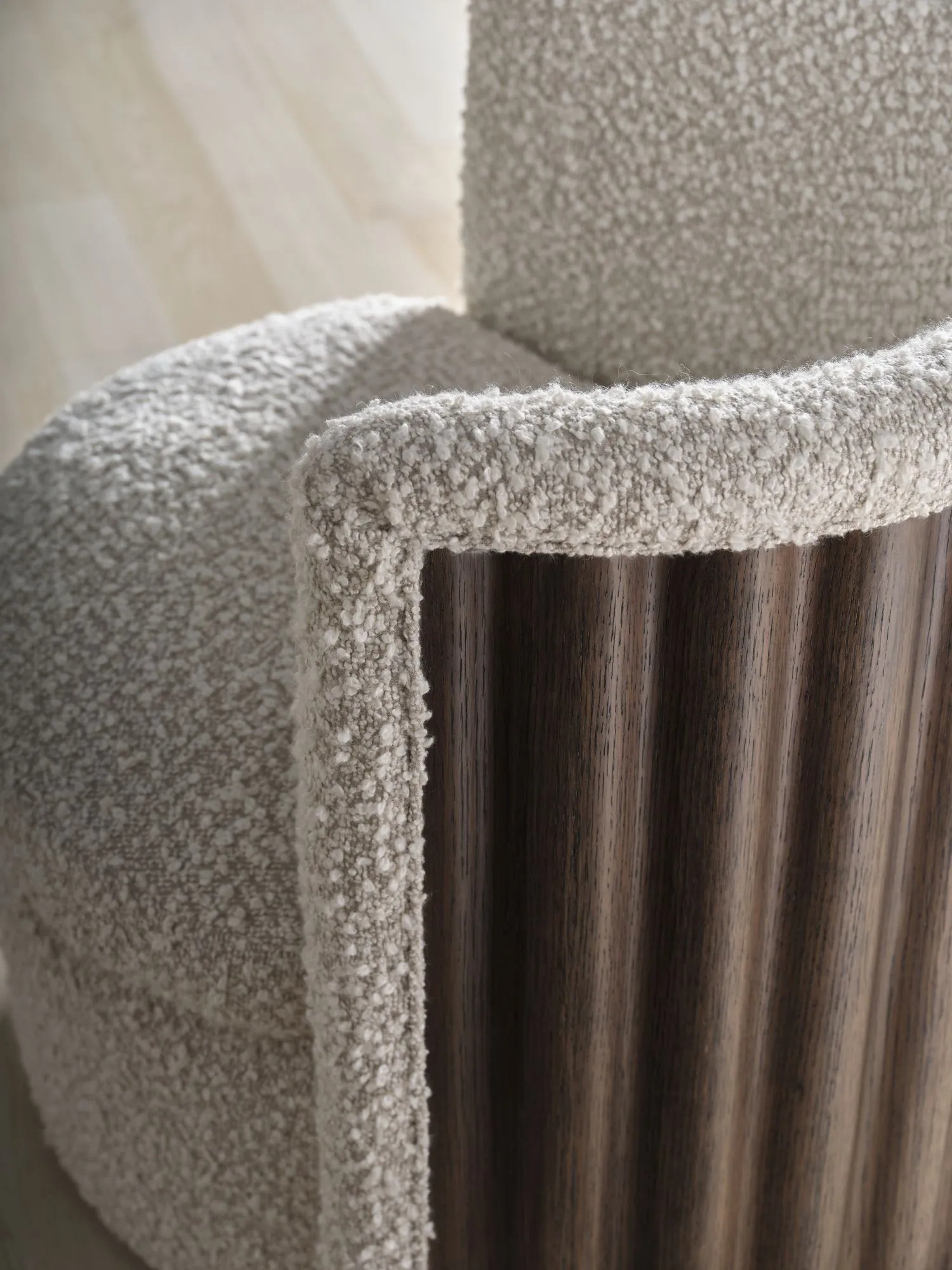 The Volute Swivel Chair is a modern reimagining of traditional opera house gallery seating. The back of the chair is finely crafted in oak to mimic the unpredictable and undulating edges of seaside cliffs.