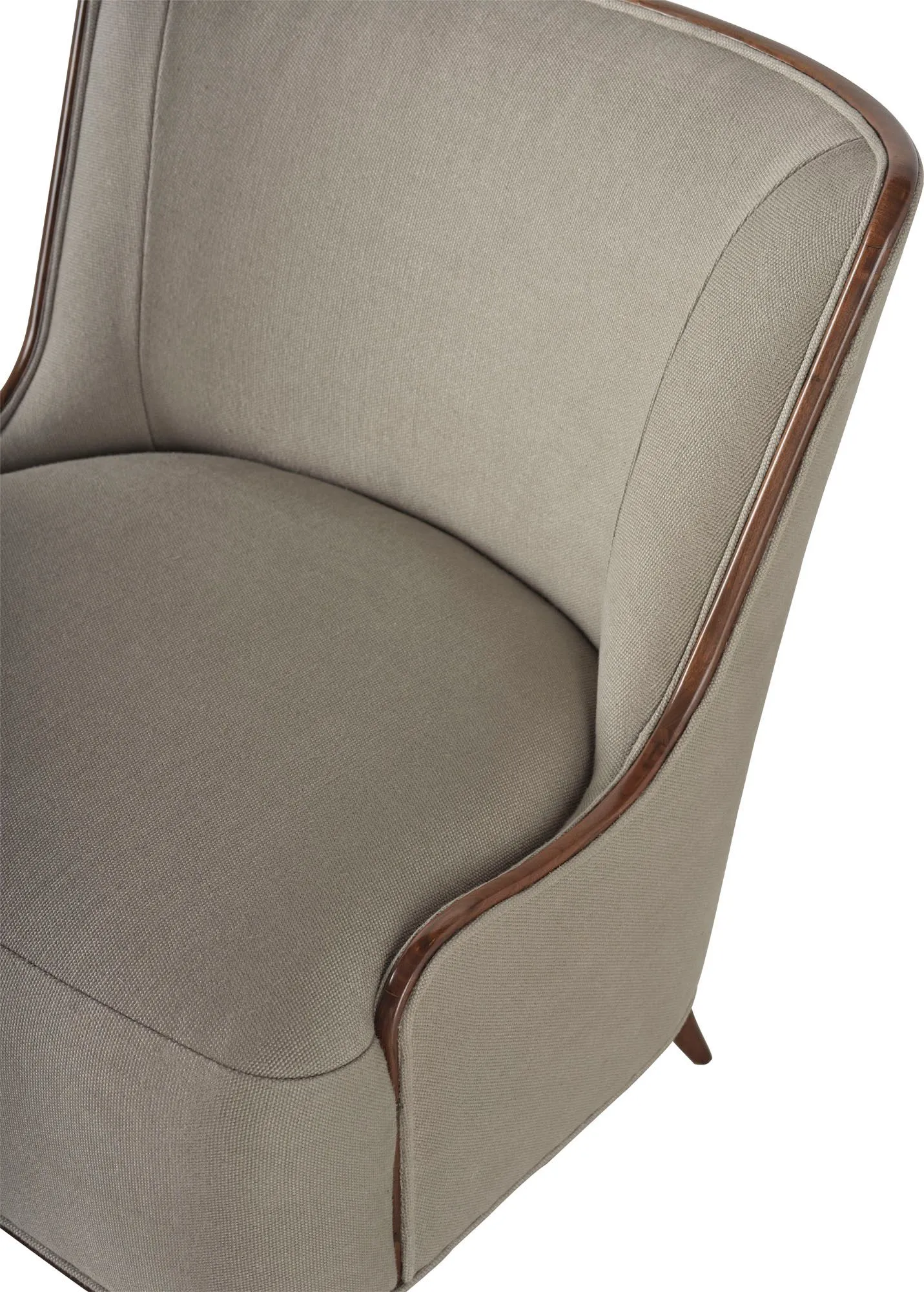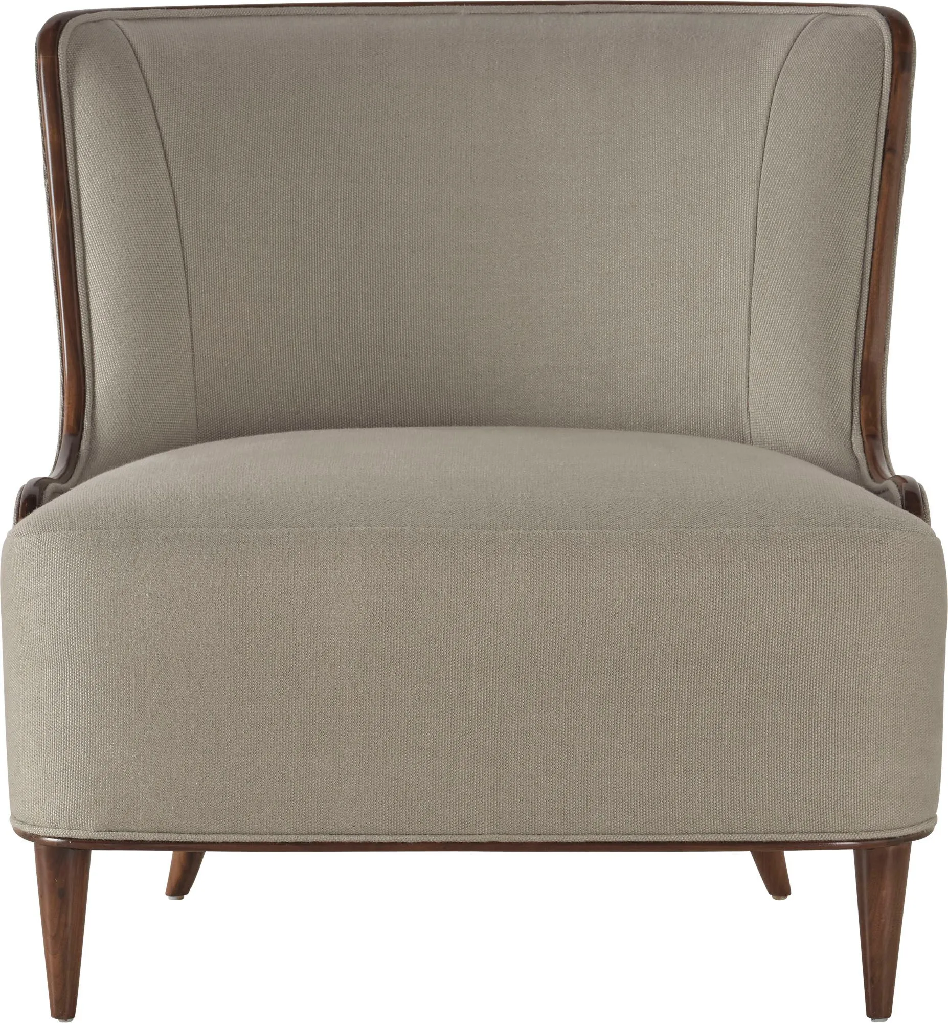 The Marino Lounge Chair is a return to the romance of a bygone era. This sophisticated occasional chair is made with a tightly upholstered form framed in softly rounded solid walnut.