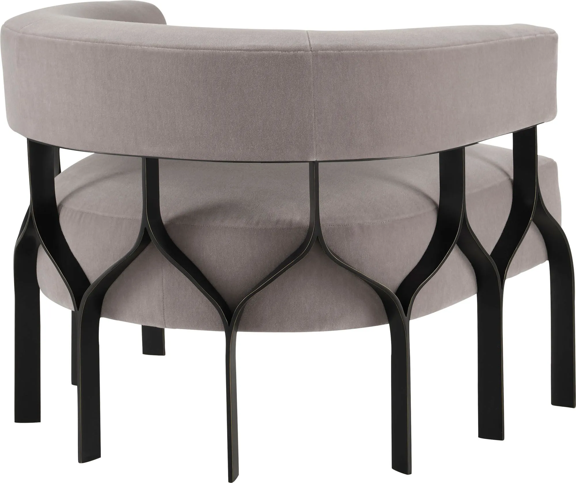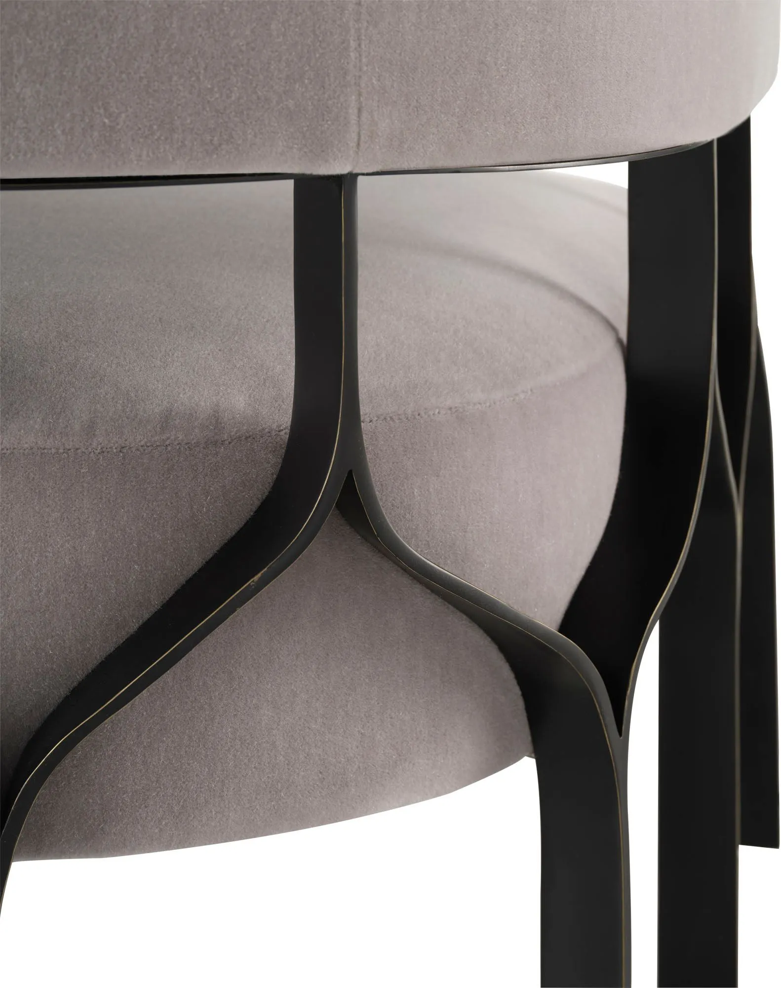 The Balustrade Lounge Chair features a continuous rhythm of metal work, setting the scene with an intricate yet tailored silhouette. Perfect as an accent piece, the chair is crafted with a bronze base and fully upholstered seat and back.